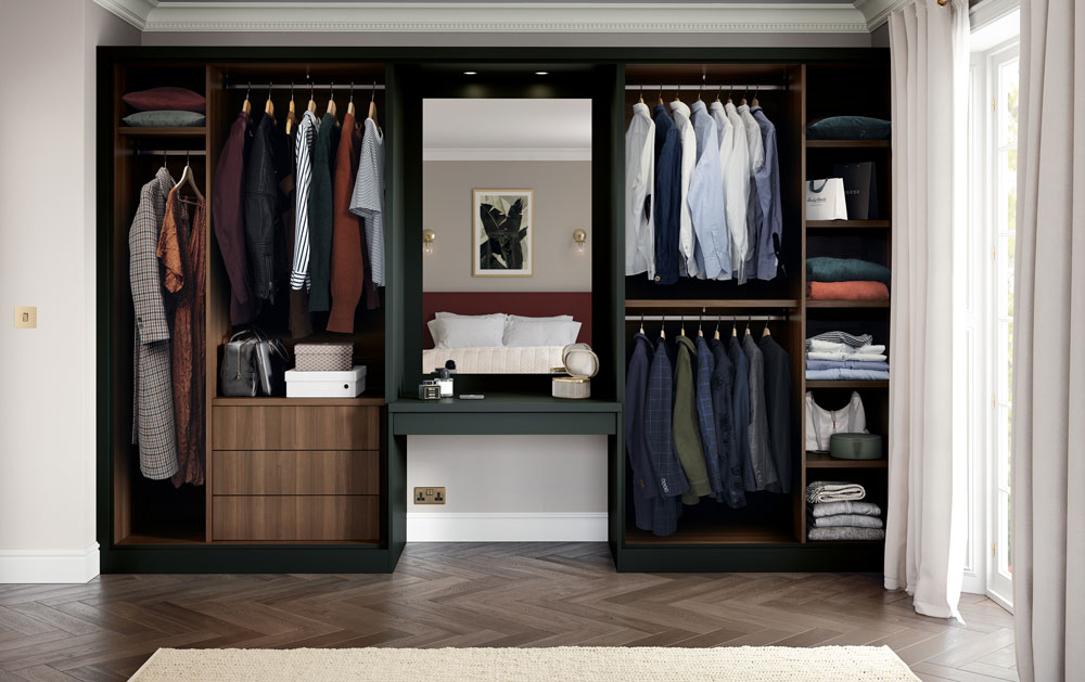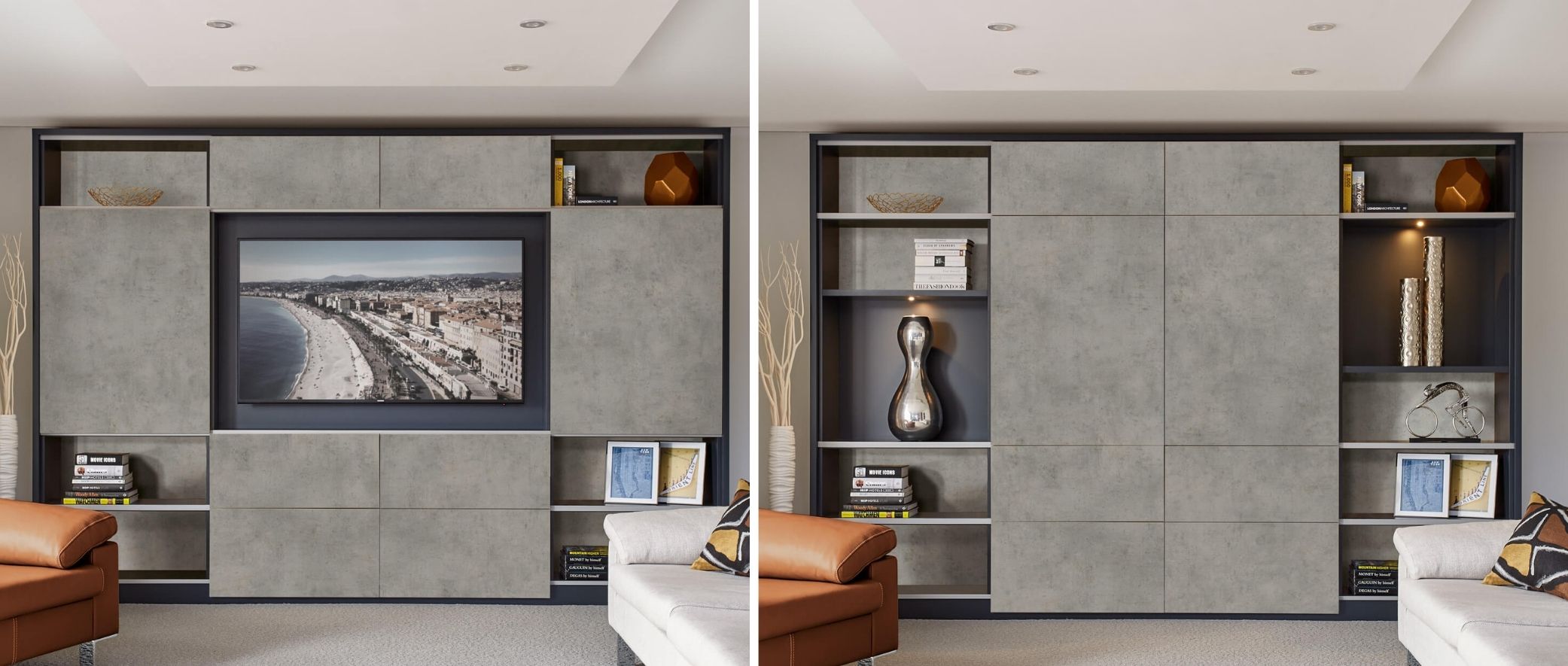 Filling the whole wall with a piece of furniture, scribing to the ceiling as well as the walls and floor will not only create a really grand minimalistic design, but it will make your space seem taller and bigger. Especially when painted in soft muted colours.”