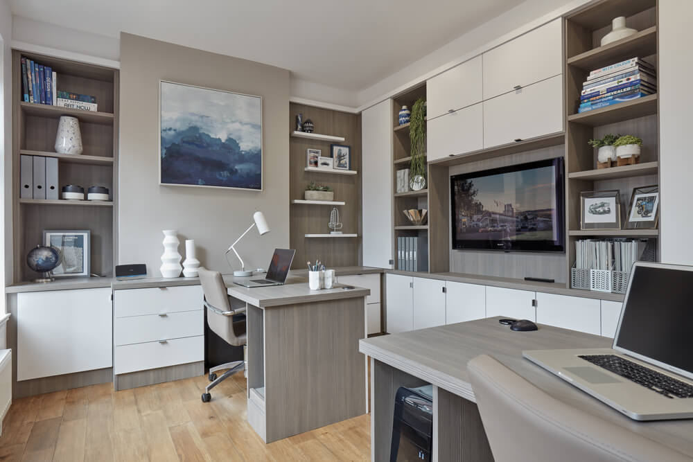 If you are converting a garage or simply have more space, you could create a dual workstation where more than one person can work in comfort. Our home office designs and finishes are available in a range of combinations with opportunities to incorporate every feature you need.