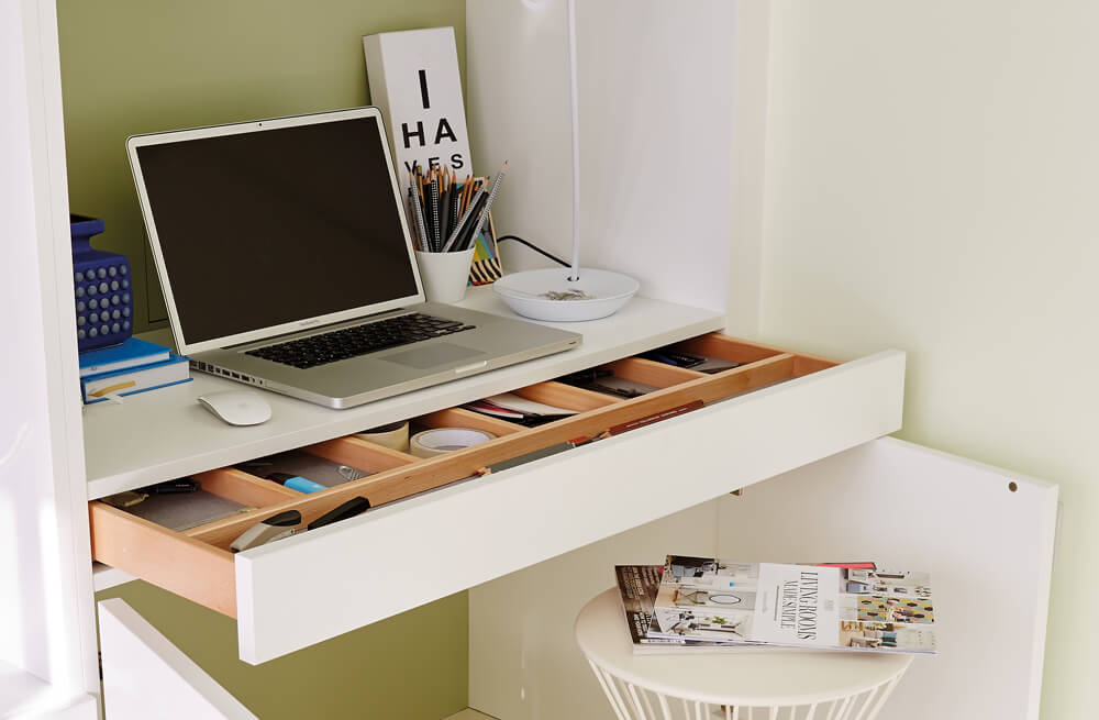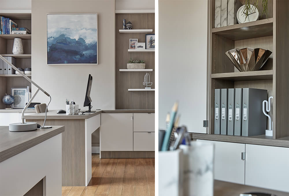 If space is limited, our designers can incorporate compact, concealed workstations in rooms such as your lounge or kitchen. Sleek cabinetry and clever drawers can disguise your desk space and printer to ensure that your professional paraphernalia won’t intrude on your family time.