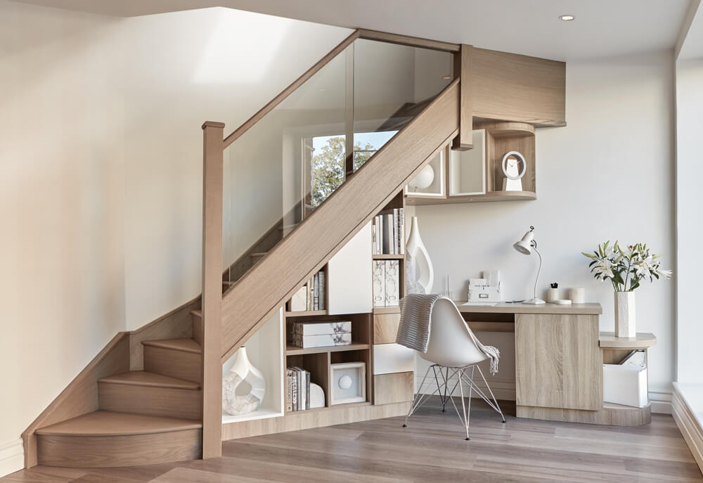 Bespoke furniture designs promote a clutter-free environment because they maximise the space you have. Whether you want to utilise the full length of a high wall, create a feature around a large window, or make the most of an area under the staircase, bespoke furniture fits seamlessly and makes the most of tricky layouts. Having an organised workspace with dedicated storage is the first step to creating a stress-free environment to keep you happy and motivated while working from home.