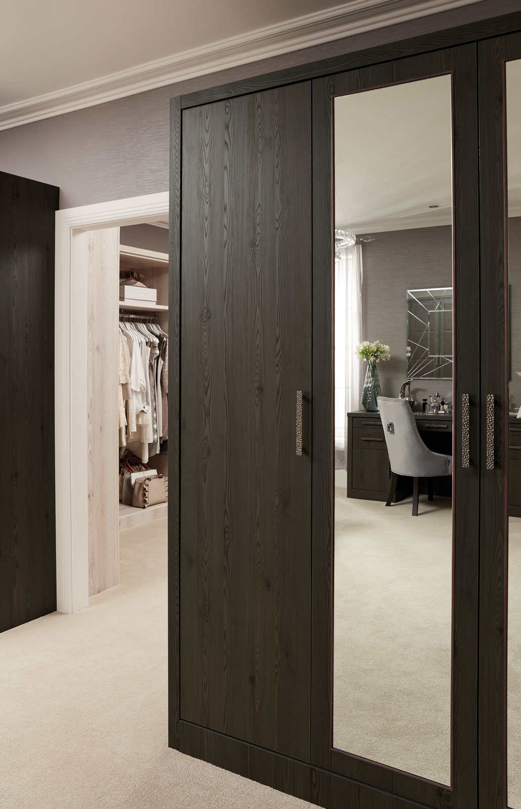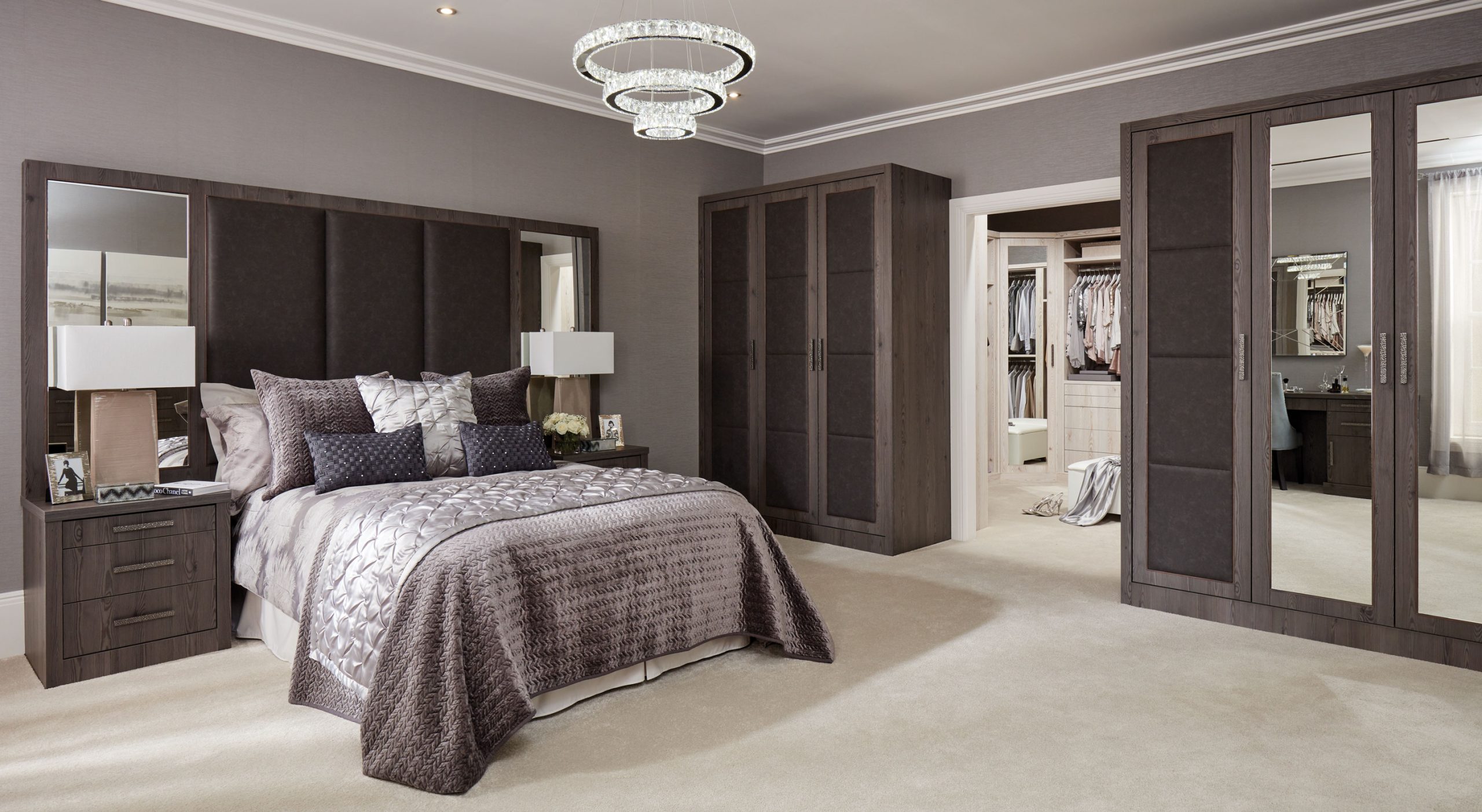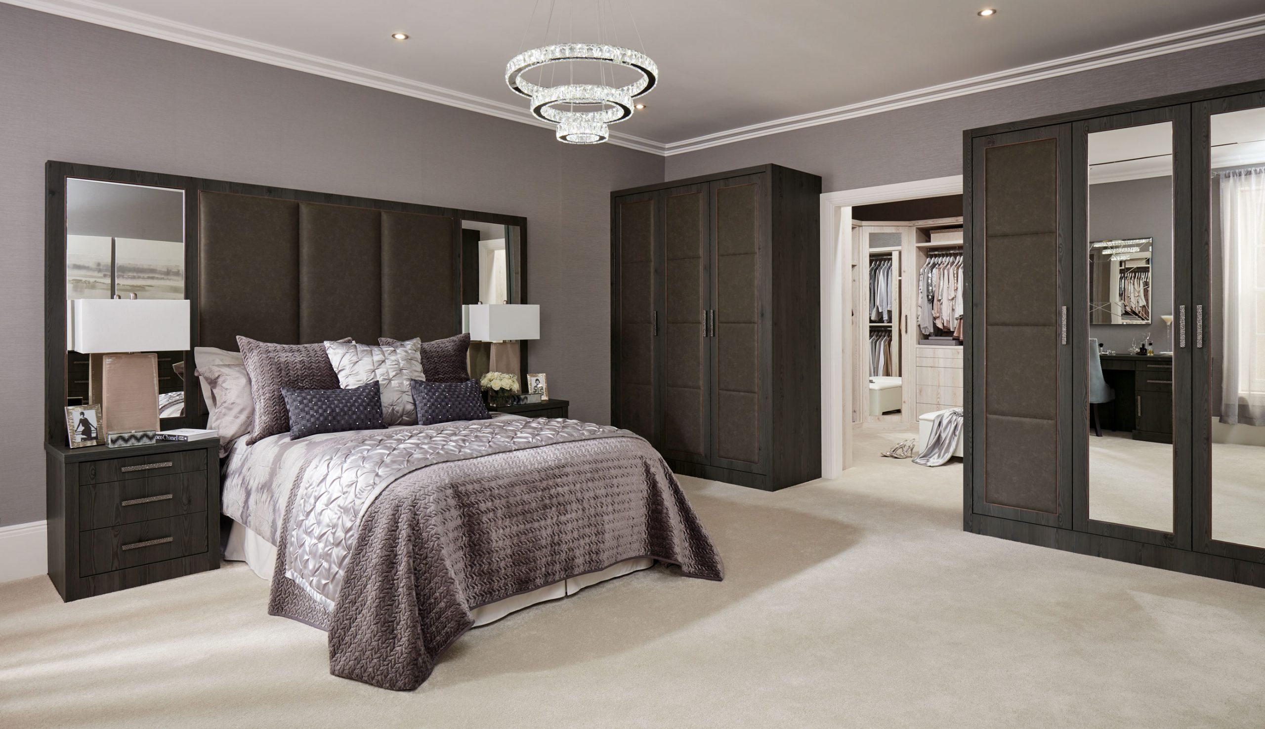 Neville Johnson fitted bedrooms are nothing but luxurious. Taking inspiration from boutique hotel bedrooms that inspire and delight guests. This design is particularly inspire by luxury and intimacy. Padded doors and headboards, combined with warm finishes create an elegant feel. Not only does this design create delightful ambience, but practical storage too.