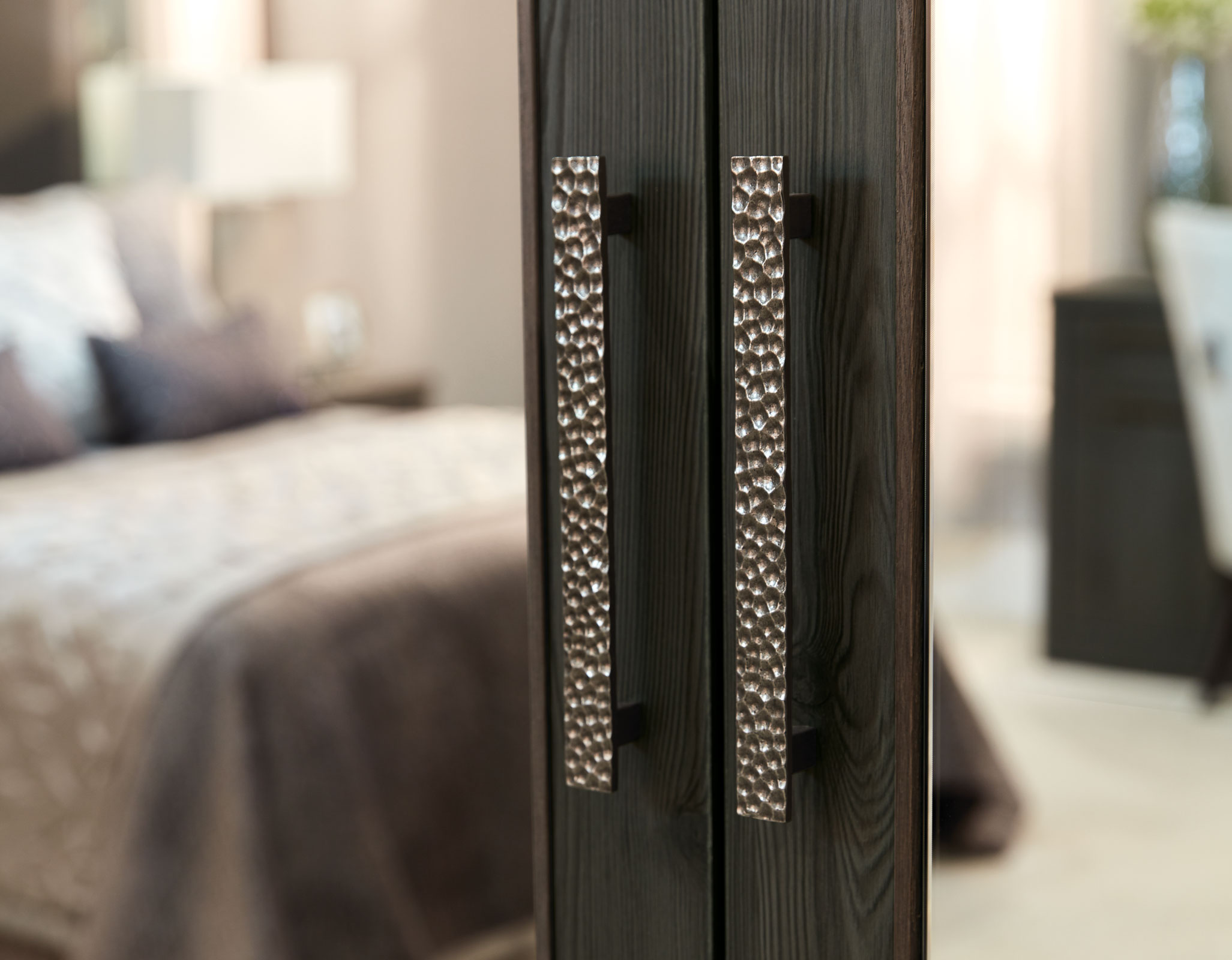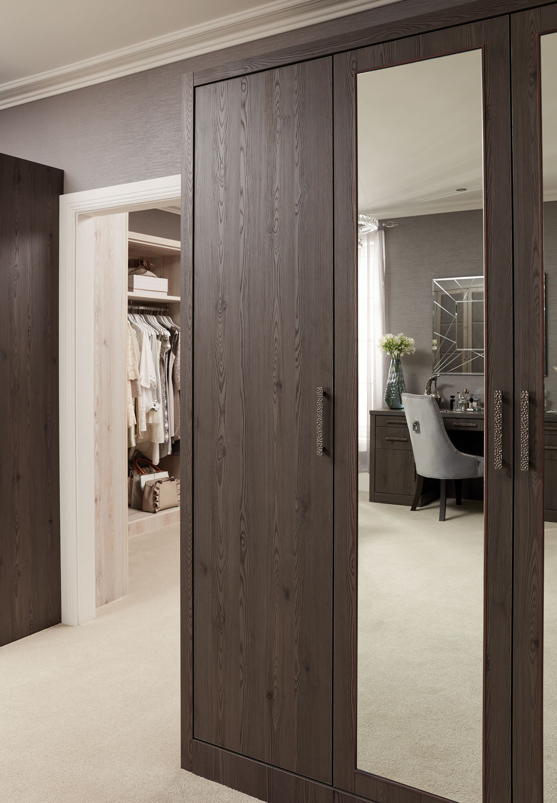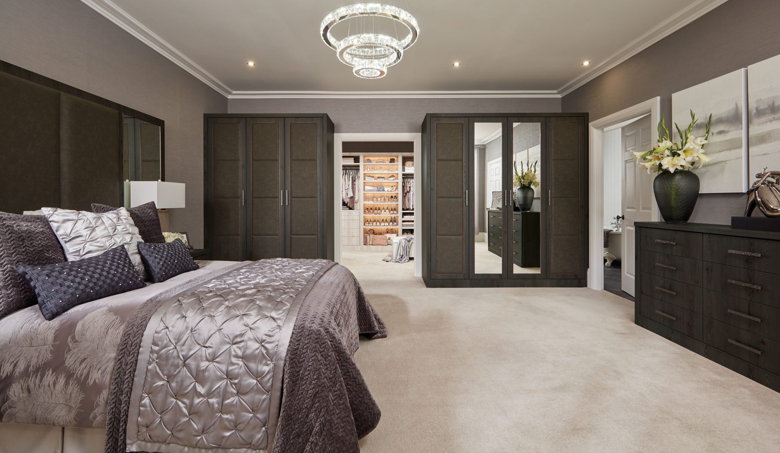 Neville Johnson fitted bedrooms are nothing but luxurious. Taking inspiration from boutique hotel bedrooms that inspire and delight guests. This design is particularly inspire by luxury and intimacy. Padded doors and headboards, combined with warm finishes create an elegant feel. Not only does this design create delightful ambience, but practical storage too.