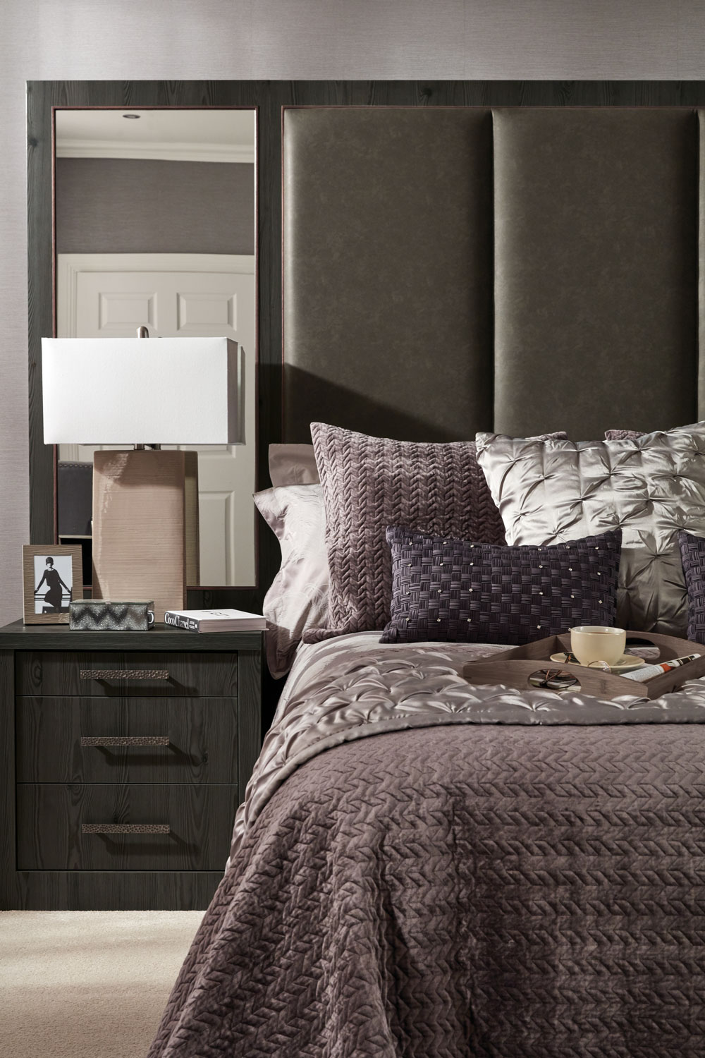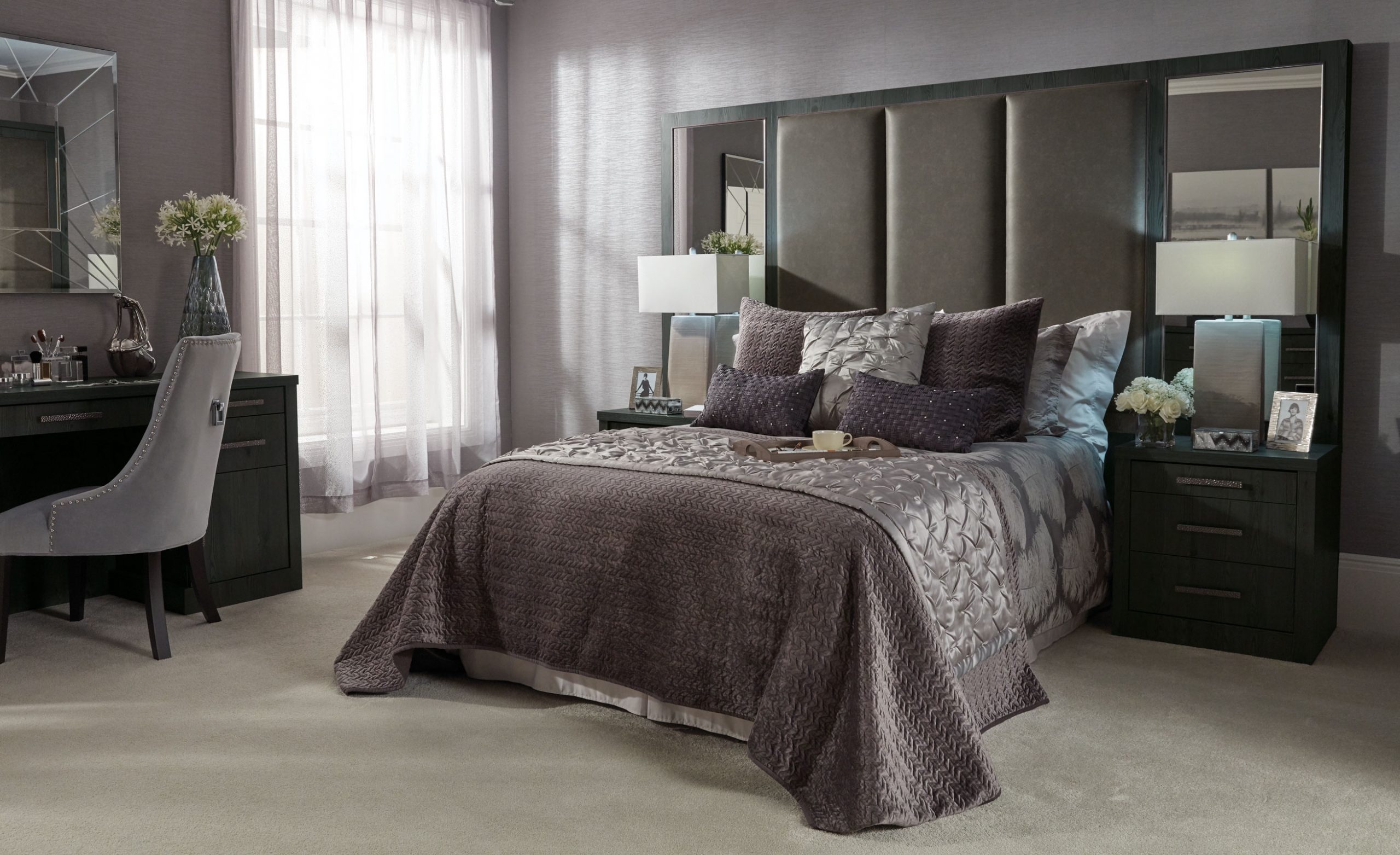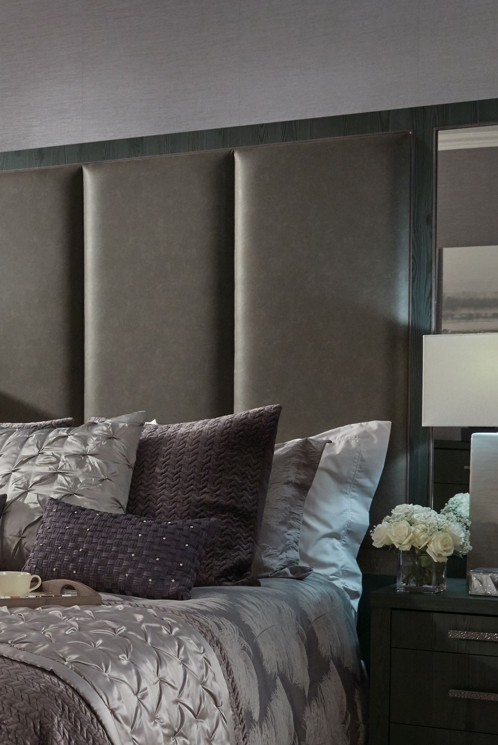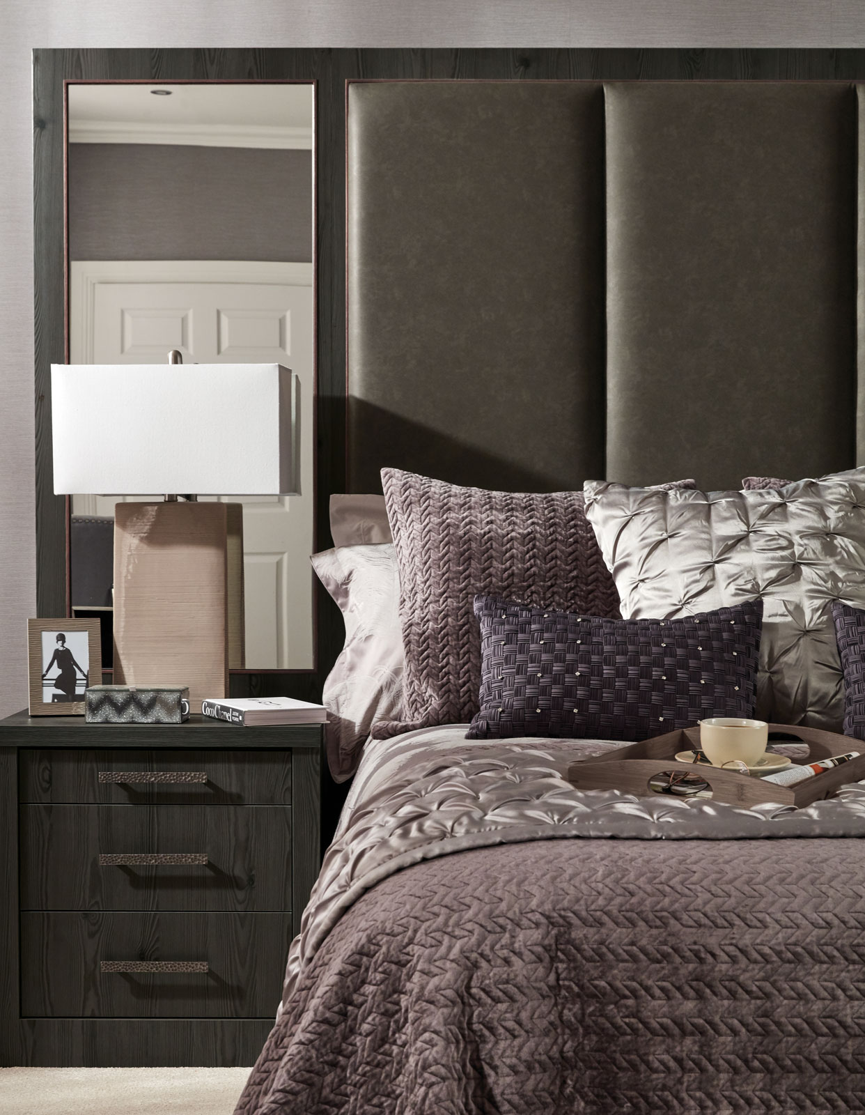 For an unrivalled night’s sleep, we’ve created this contemporary headboard with integrated mirrors and bedside cabinets. The relaxing experience continues with ultra-padded fabric panels. Sheer bliss…