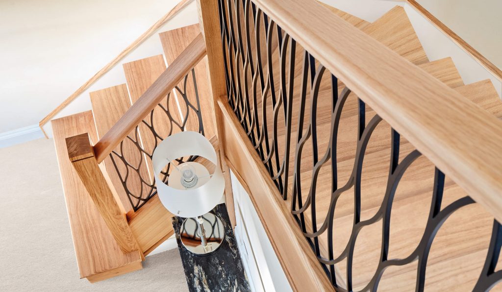 Gorgeous floor-to-ceiling windows occupy the mezzanine snug area on the first floor, where natural light floods through to the hallway. To maximize light in the home, our designer selected cut-string glass spindles for the balustrade design, which not only allowed the light to flow throughout but created a stylish and artistic element to the design.