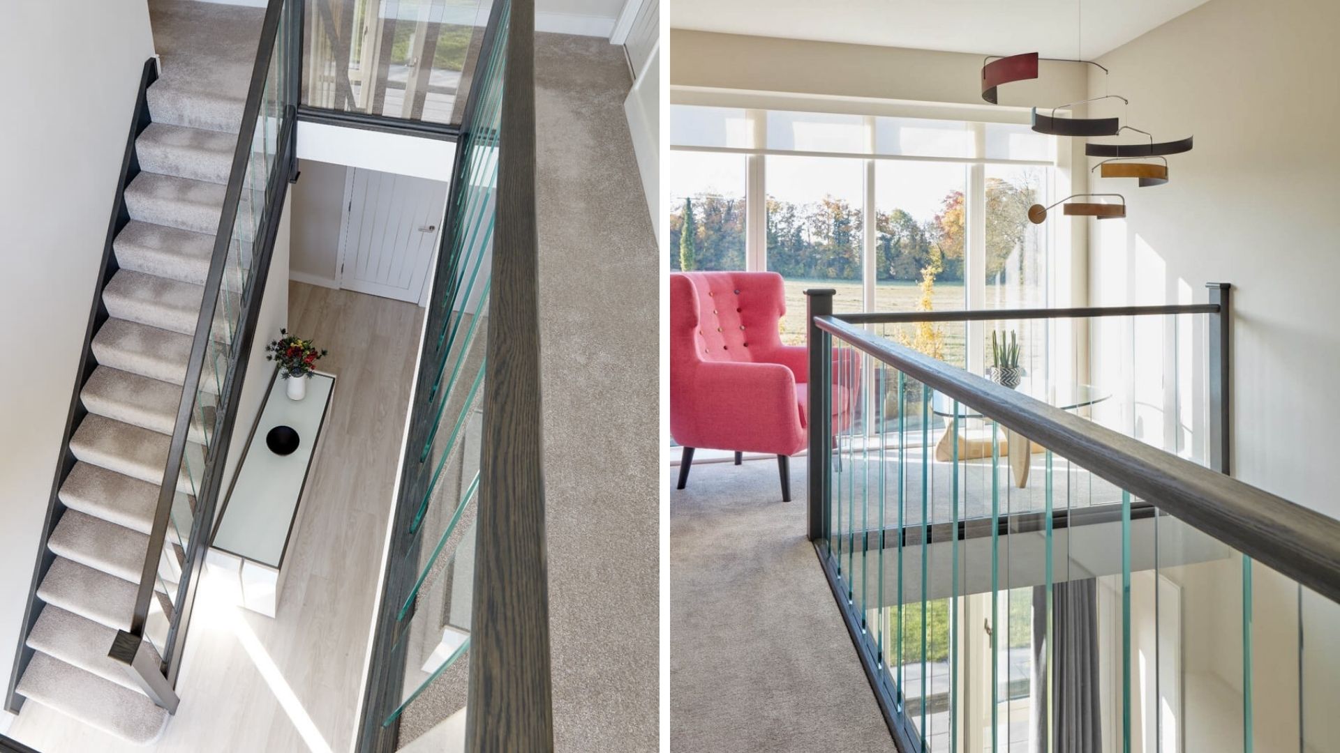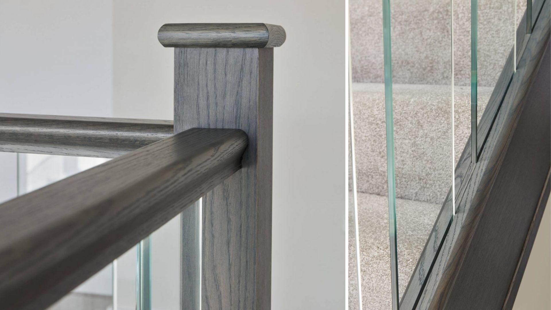 “Our sheer glass spindles are a contemporary addition to a balustrade, offering unrestricted light flow with a distinctive yet subtle design. The Smoked Oak finish perfectly complements the neutral white walls while also balancing the vibrant decor.” – Geoff Fletcher, Senior Staircase Designer