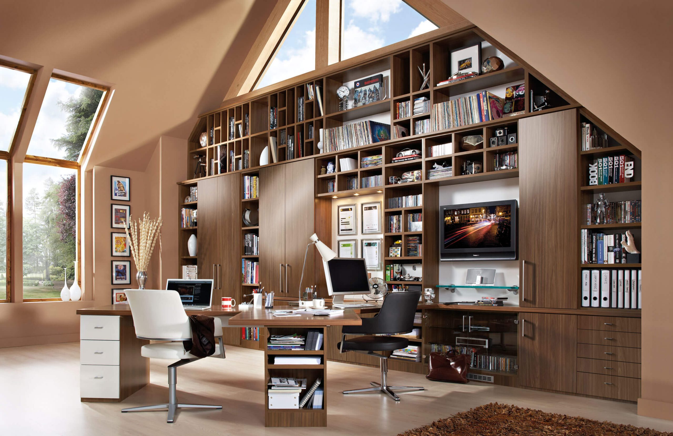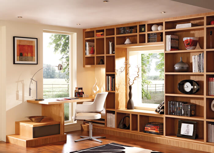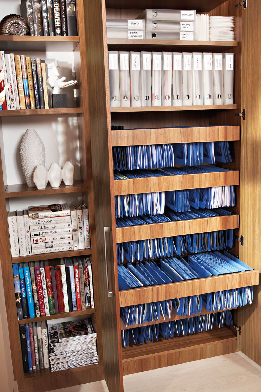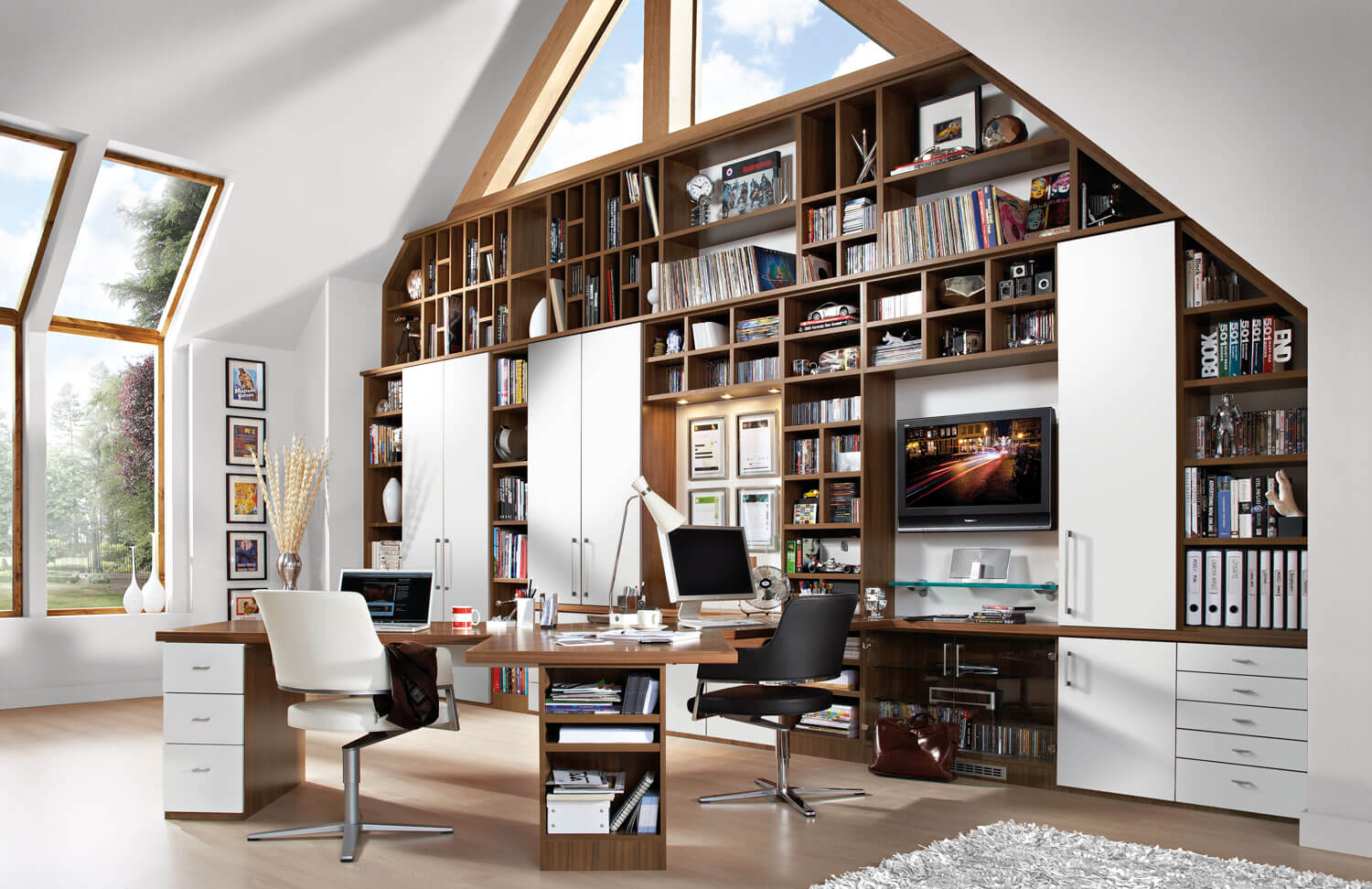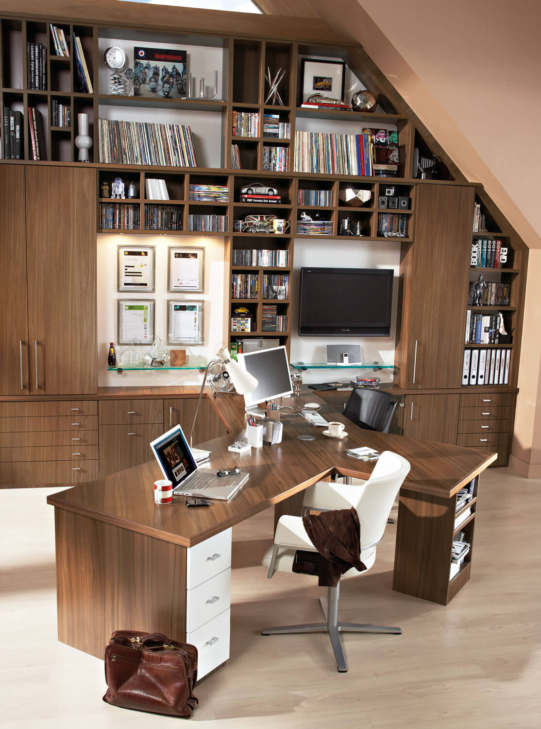 Working from home shouldn’t mean settling for unsightly cabinets and bulky furniture. If you’re looking for fresh home study ideas this stunning design is a modern take on a classic home office. Featuring Continental Doors, Neville Johnson’s exclusive design, shown in walnut and white. It includes an abundance of storage options, so you’ll never need to leave piles of documents on your desk. There really is a place for everything.