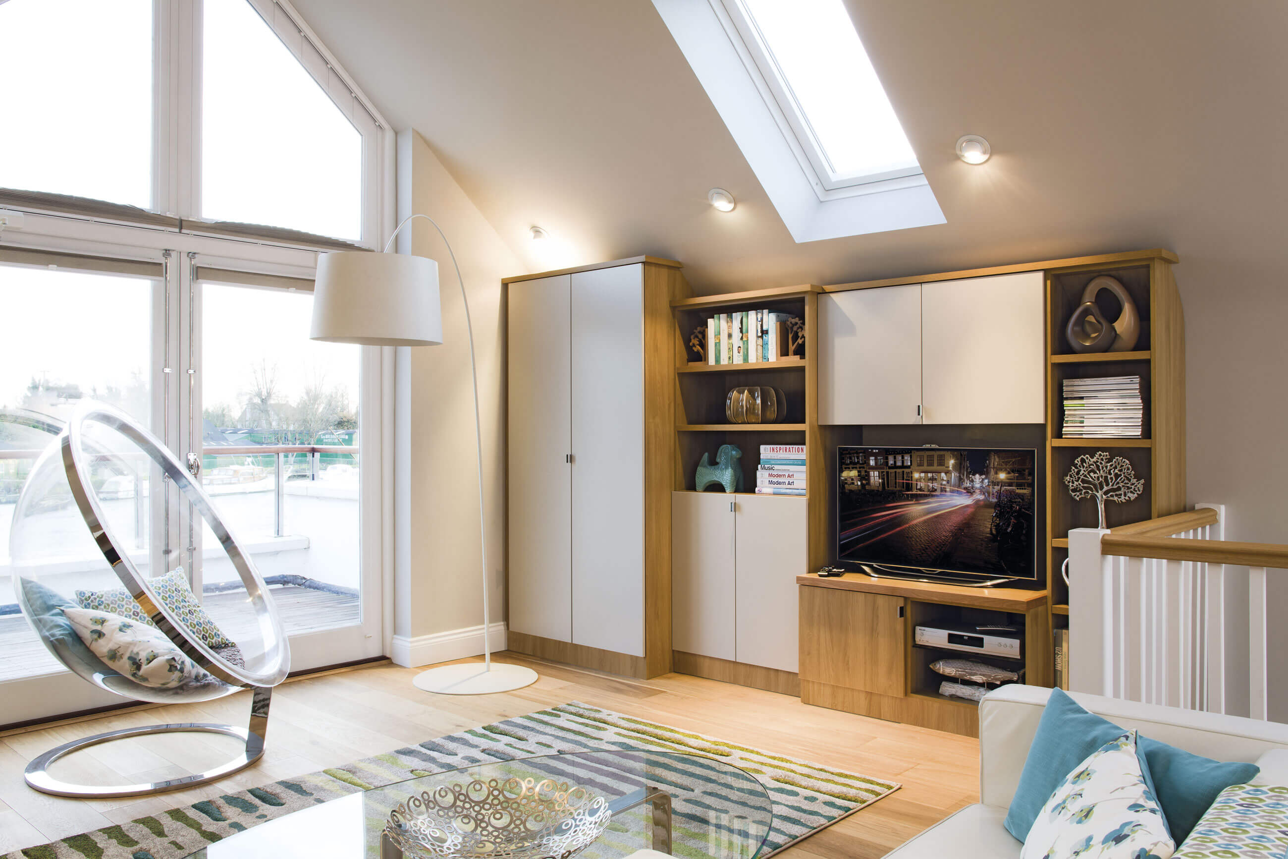 Eaves are the underside of your house’s roof; they’re what we call the sloped parts of your attic conversion. Eaves present one of the biggest challenges for loft bedroom storage because their changing height means lots of traditional furniture won’t fit in the space.