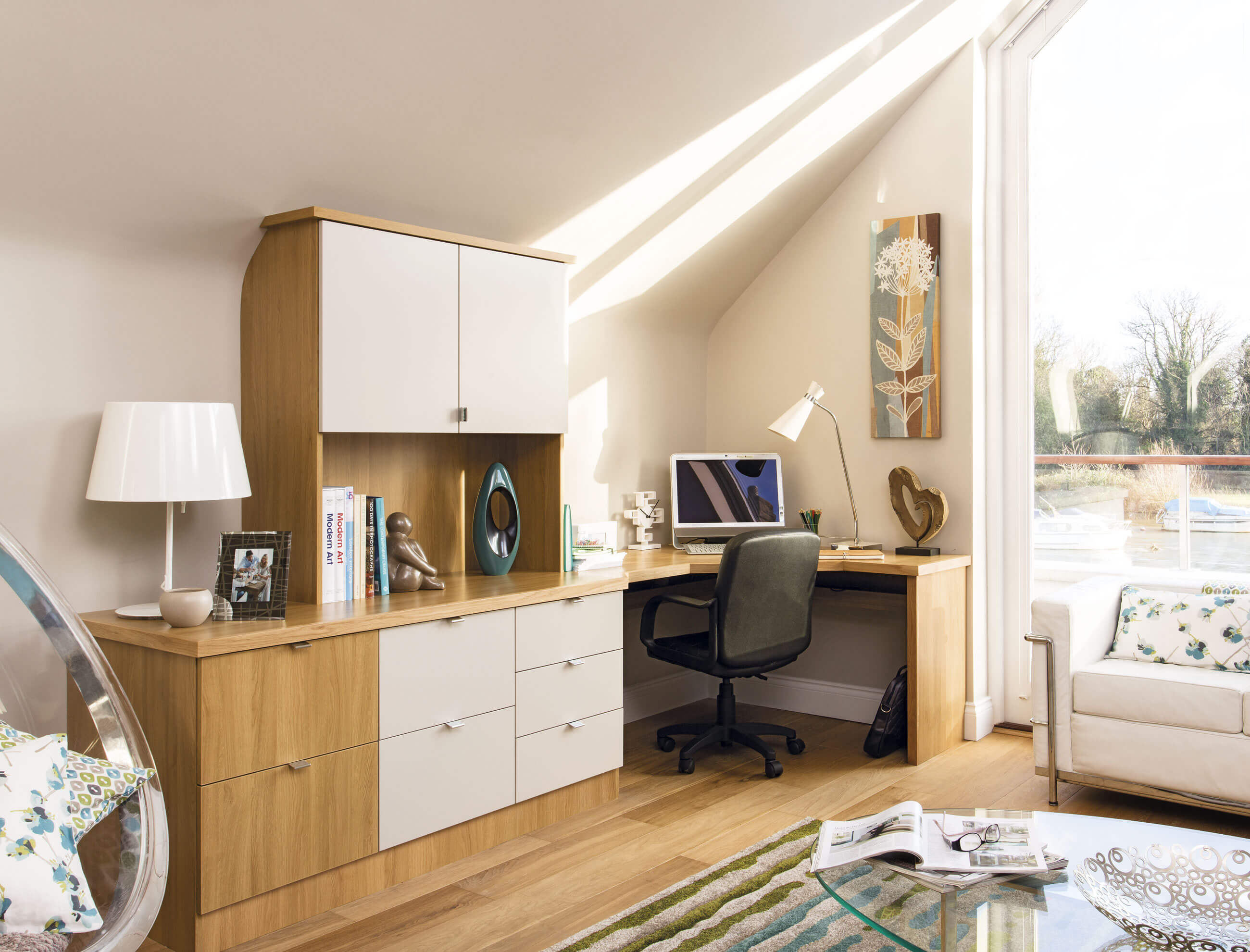 Attic bedrooms with sloping ceilings often include low, narrow spaces that you need to stoop to get into. Rather than wasting this inaccessible part of your loft, line the wall with low-level units for extra storage.