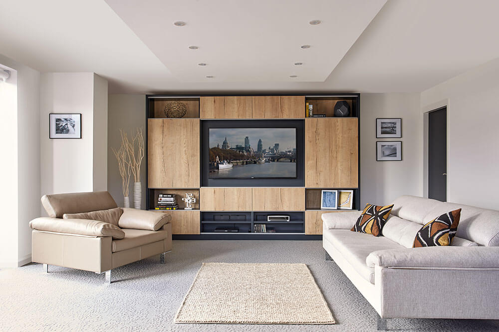 Peninsula units are perfect for larger living areas. They can create subtle segregation and are ideal places to display artwork and photographs. If you want a home cinema solution, think about mounting the TV on the wall with the wires discreetly stored away behind built-in furniture. Home cinema furniture can also hide wiring and store other technology that you don’t want on show. We can help you to plan your storage around future technology or growth, so even in years to come, you can enjoy a clutter-free space.