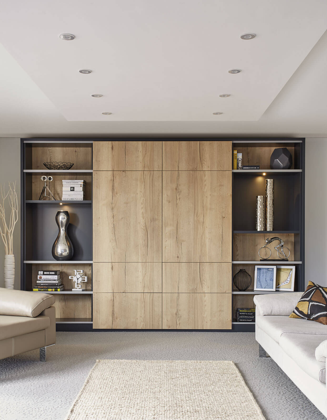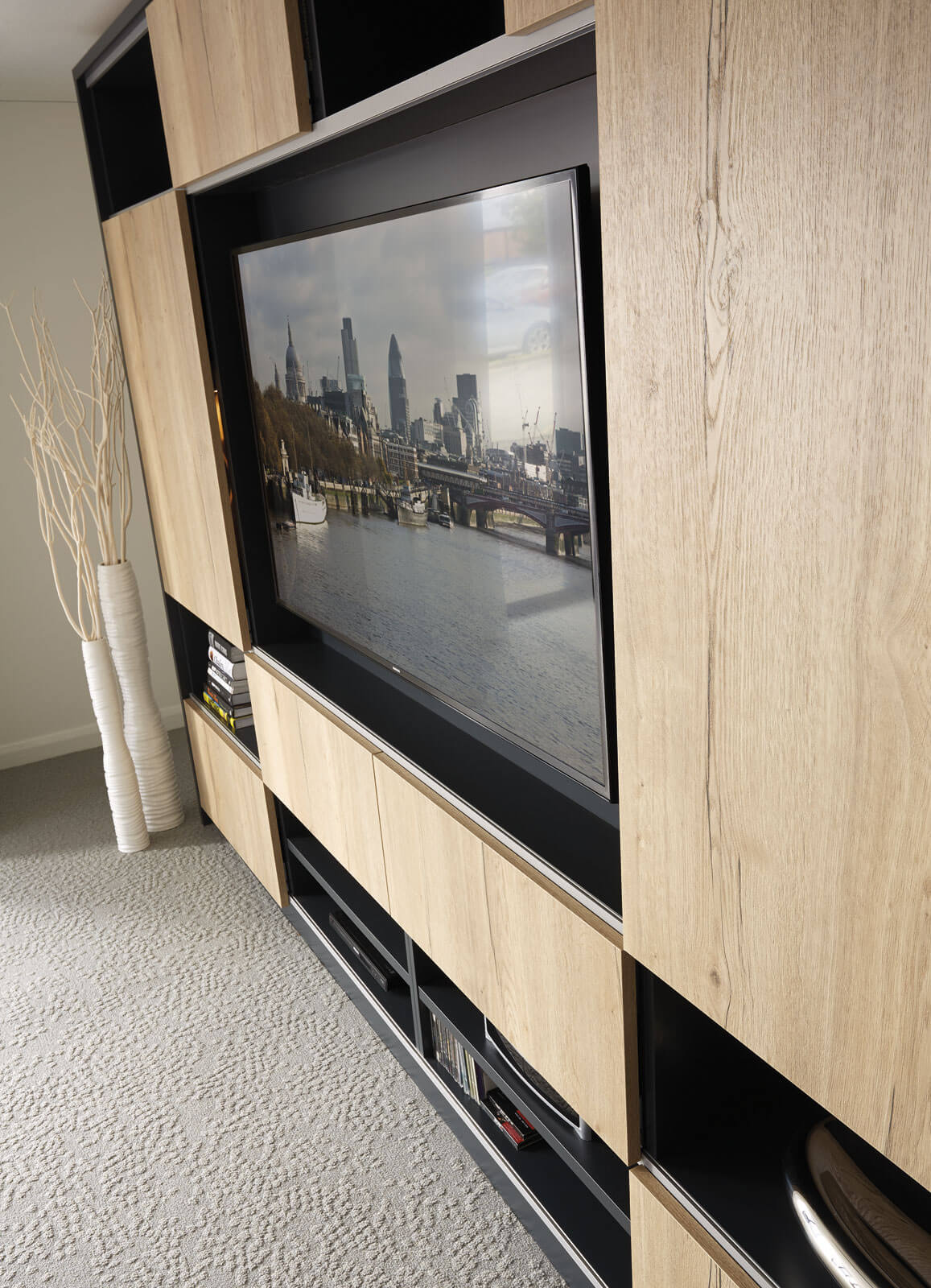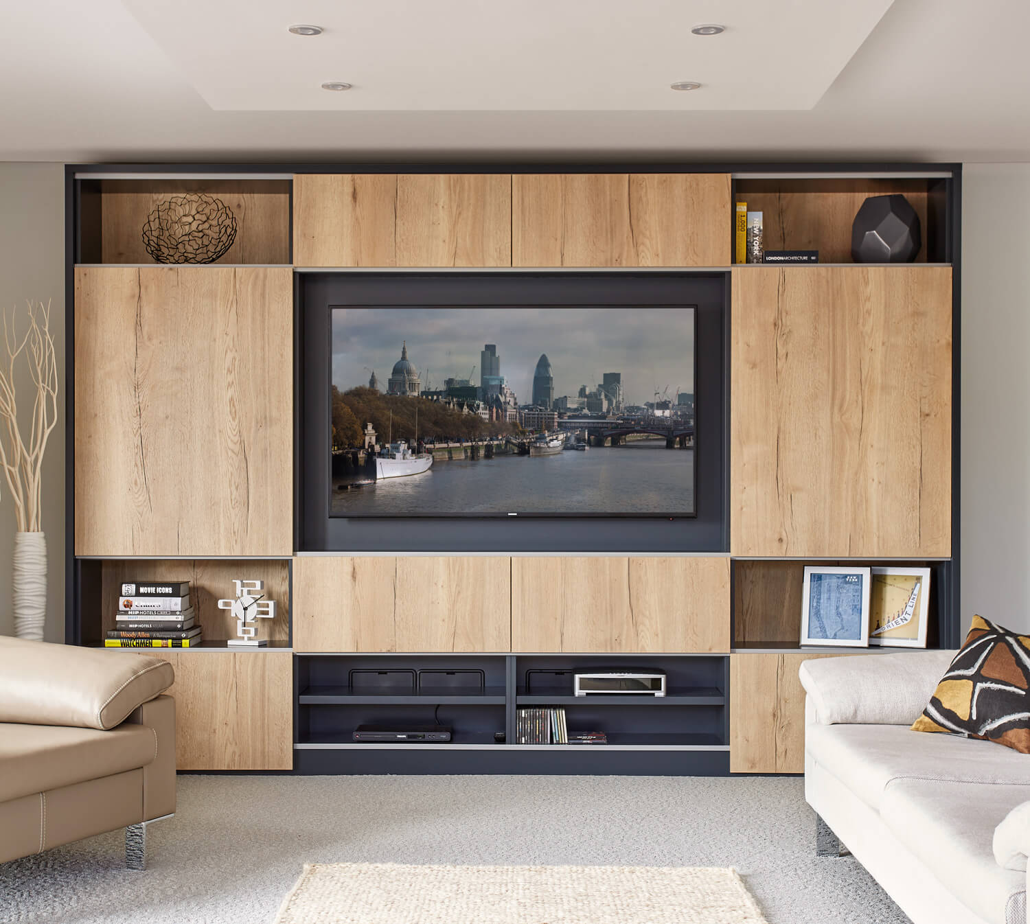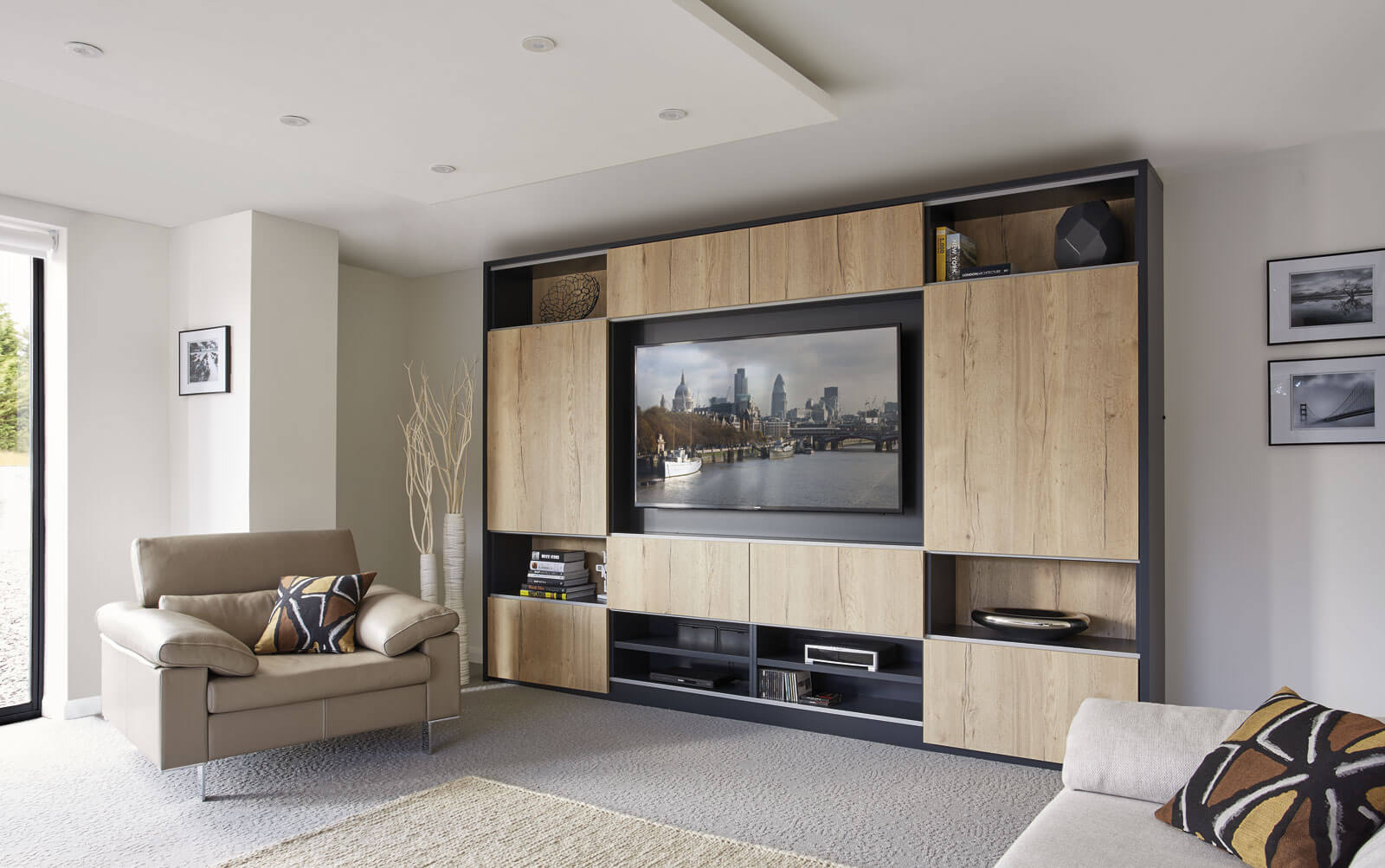 This contemporary living room furniture features our new Edale Chestnut finish. A crisp simple design that incorporates stylish storage in the living room with a dedicated media centre. Hide away unsightly wires and cables with sliding doors. In addition, cover or reveal the TV and other electronics as desired. Adapt this contemporary lounge furniture for your space. Designed and built to fit the proportions of the room, therefore making it a perfect addition to any home.