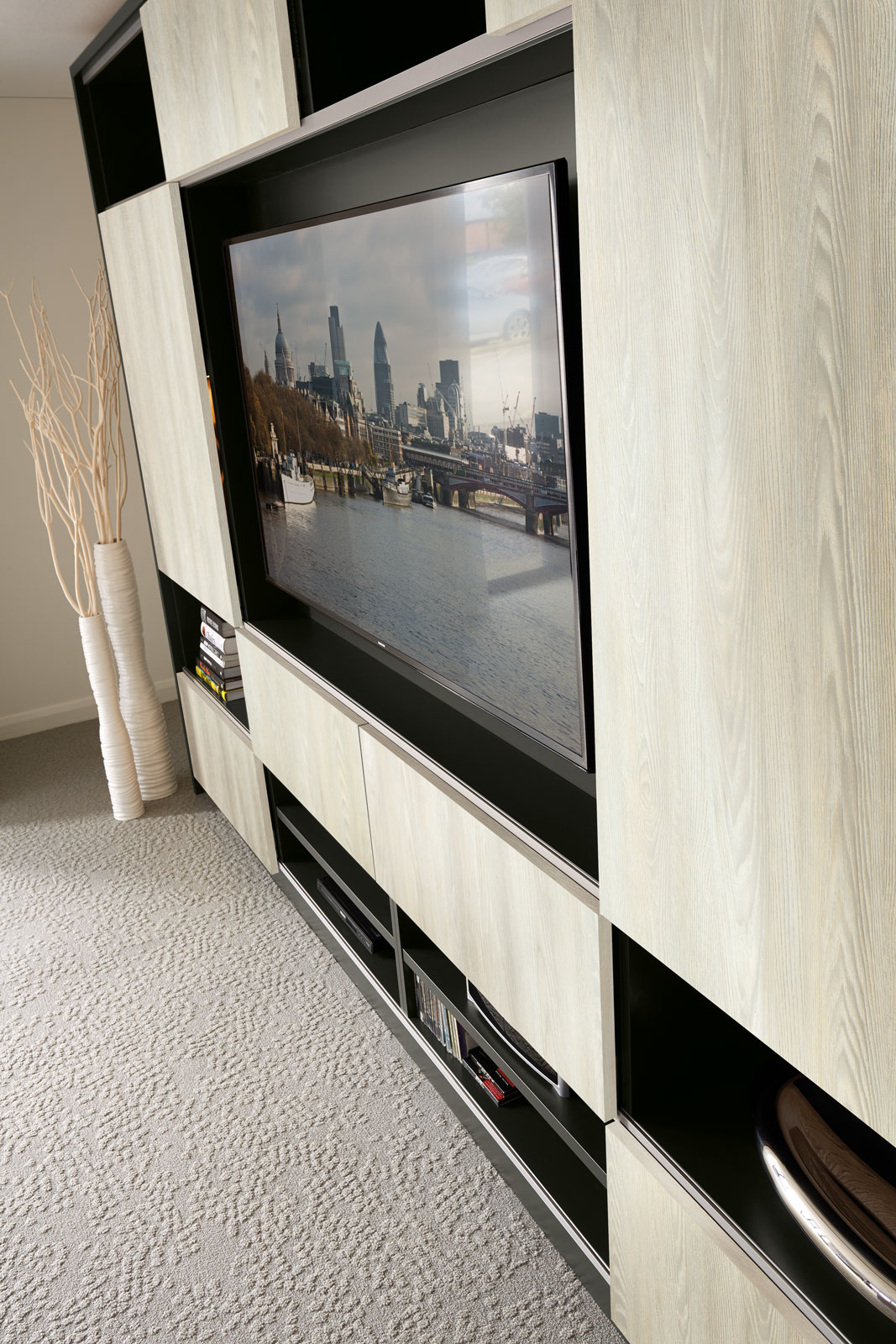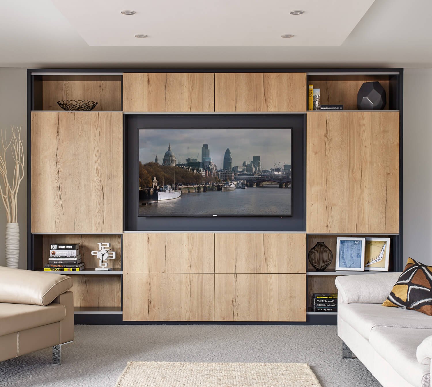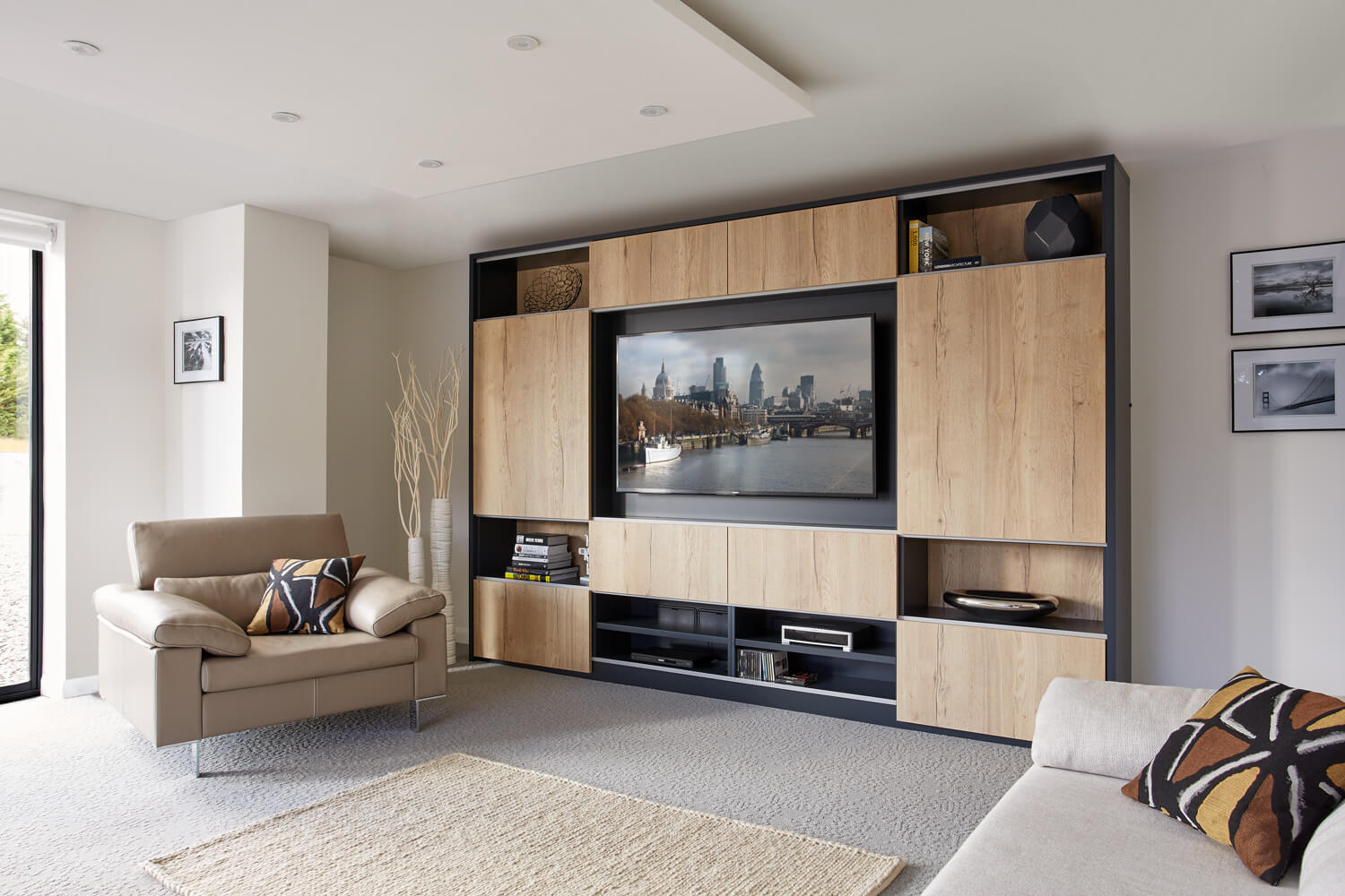 This contemporary living room furniture features our new Edale Chestnut finish. A crisp simple design that incorporates stylish storage in the living room with a dedicated media centre. Hide away unsightly wires and cables with sliding doors. In addition, cover or reveal the TV and other electronics as desired. Adapt this contemporary lounge furniture for your space. Designed and built to fit the proportions of the room, therefore making it a perfect addition to any home.