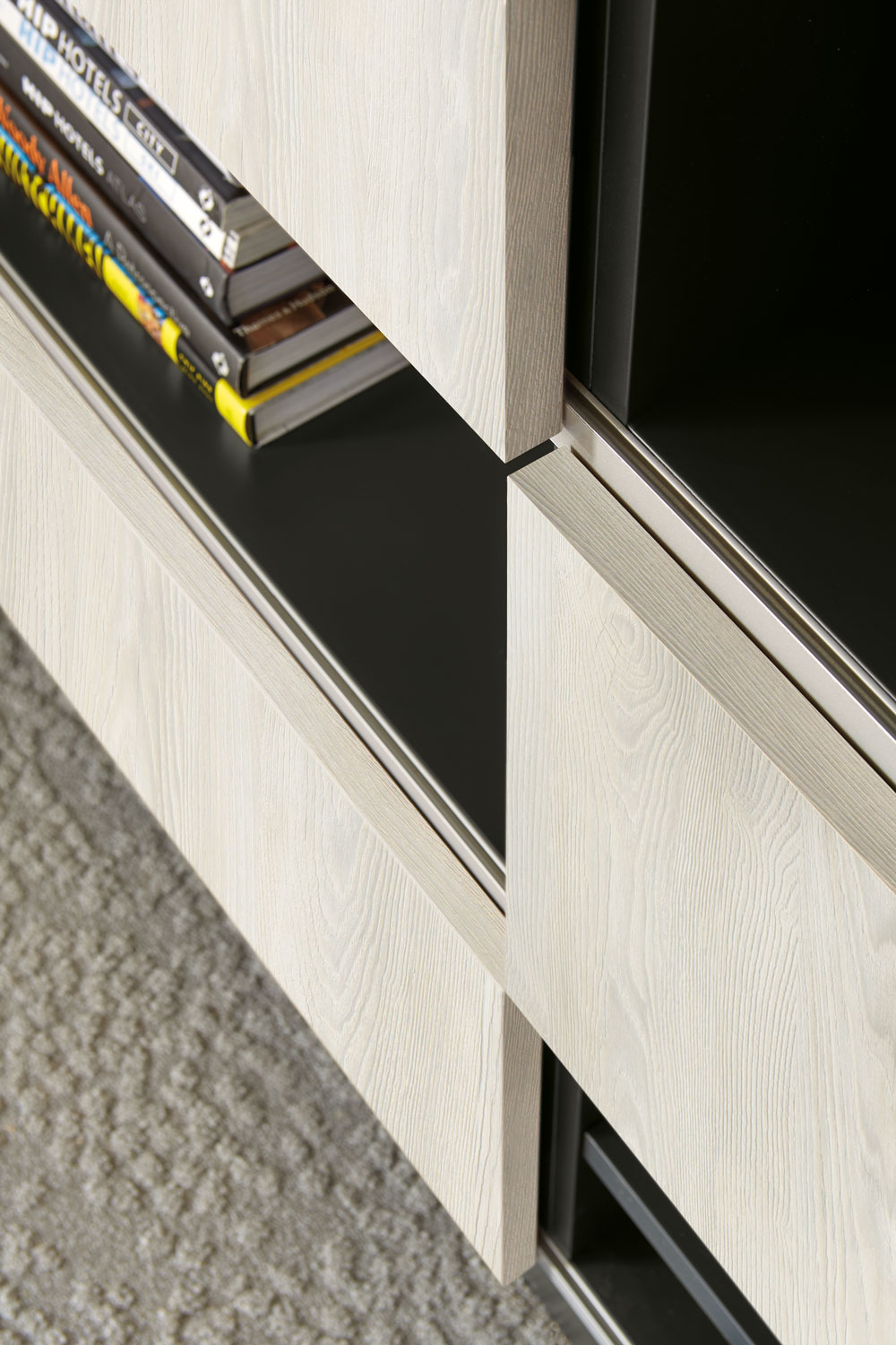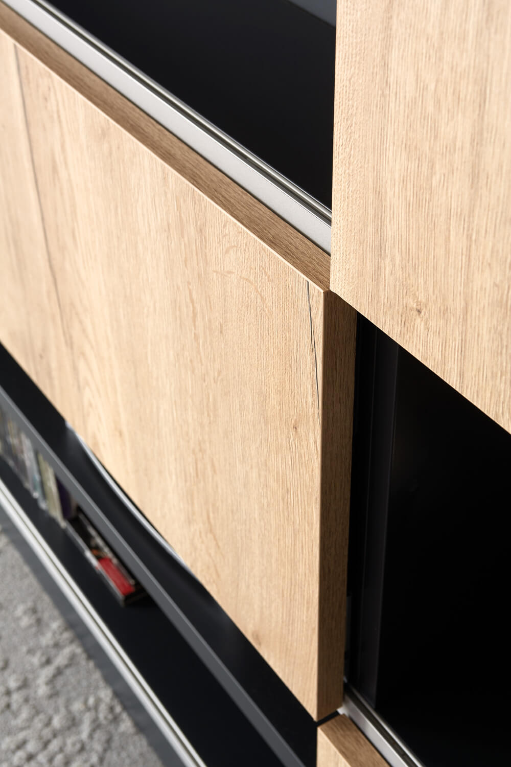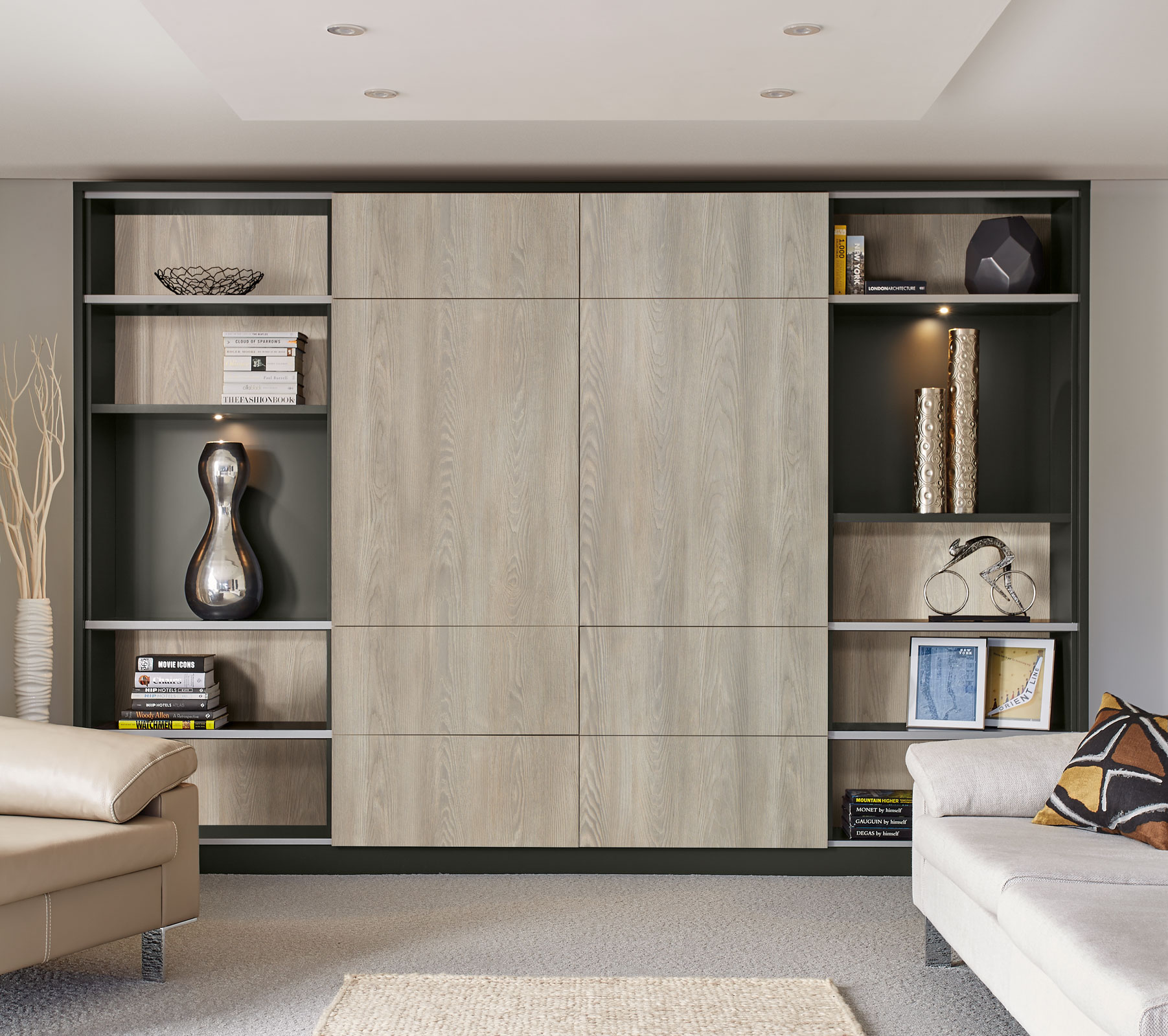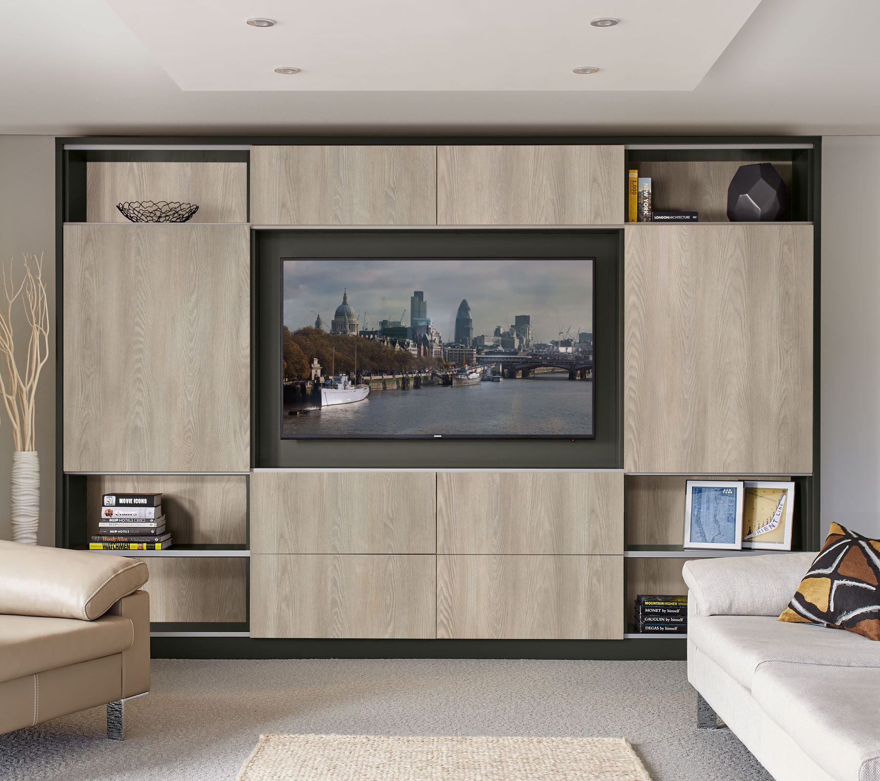 This contemporary living room furniture features our new Edale Chestnut finish. A crisp simple design that incorporates stylish storage in the living room with a dedicated media centre. Hide away unsightly wires and cables with sliding doors. In addition, cover or reveal the TV and other electronics as desired. Adapt this contemporary lounge furniture for your space. Designed and built to fit the proportions of the room, therefore making it a perfect addition to any home.