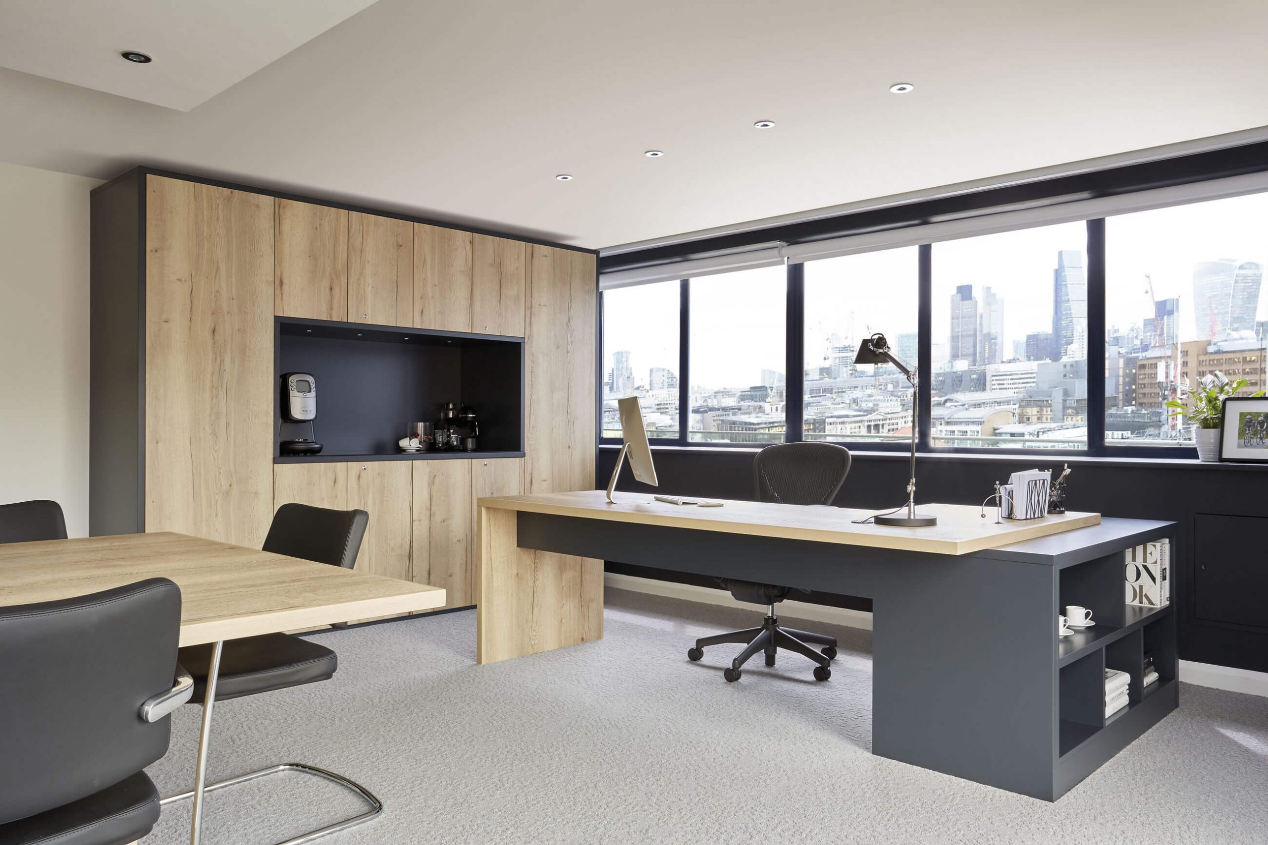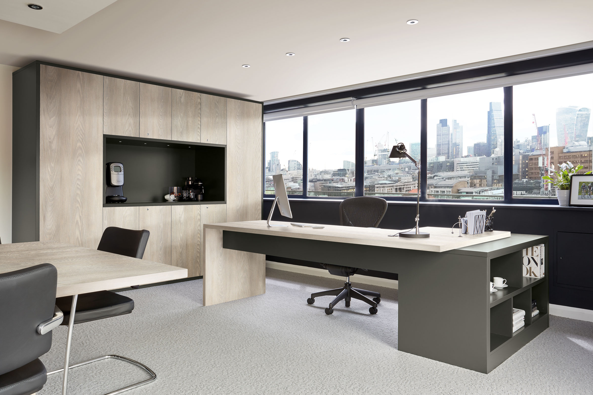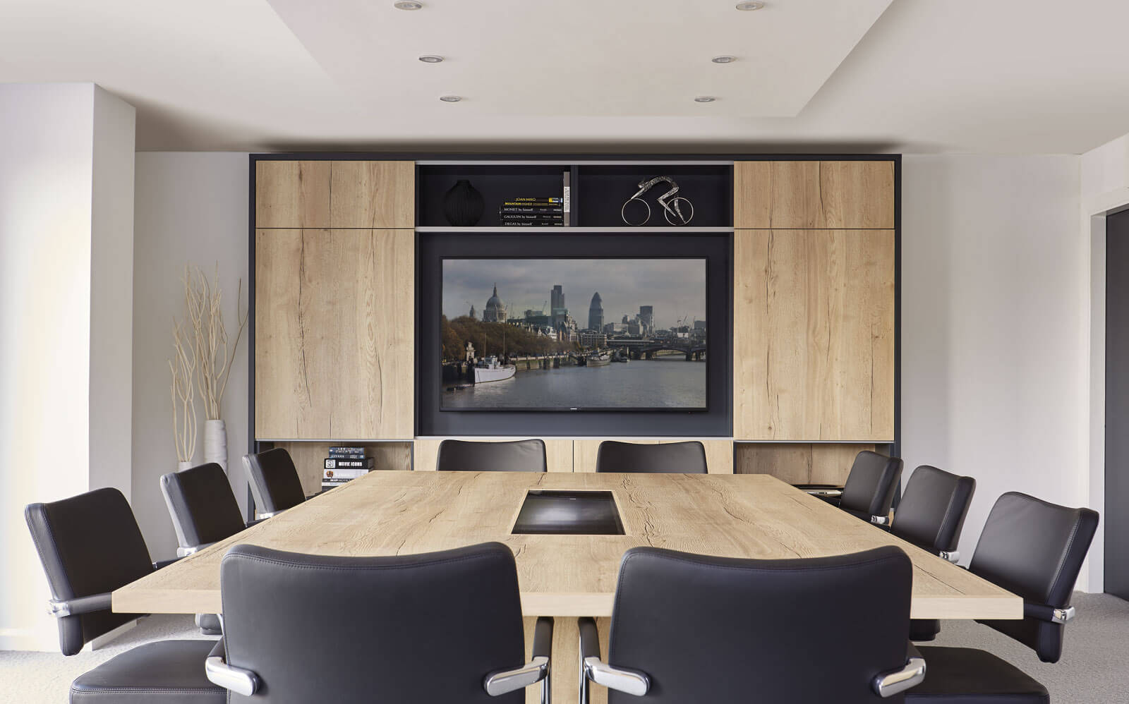 This contemporary home office furniture design is finished in our new Edale Chestnut finish, in a crisp simple design. This complete office solution combines function and form, with attractive modern styling disguising extensive storage for a clean, professional look. Every office need is catered for, with clear media presentation space and a co-ordinating alcove for tea and coffee making facilities.