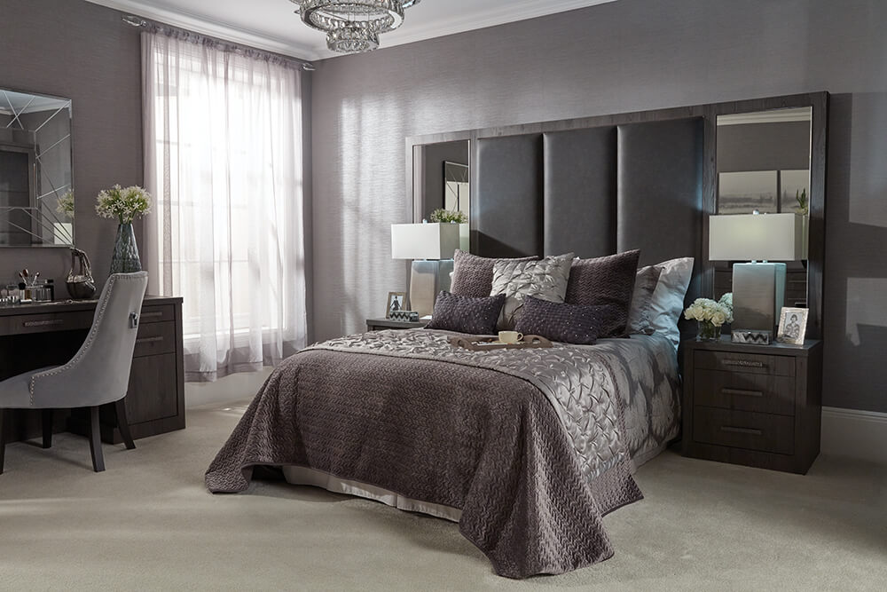 Darker colours can work well in bedrooms helping to create a cocoon effect. Taupe, greys, silver, moody blues and gentle greens are all considered to be more refined and soothing perfect for rooms of all sizes. Not only are these strong colours perfect for injecting personality and warmth, but they can also absorb light helping to induce sleep.