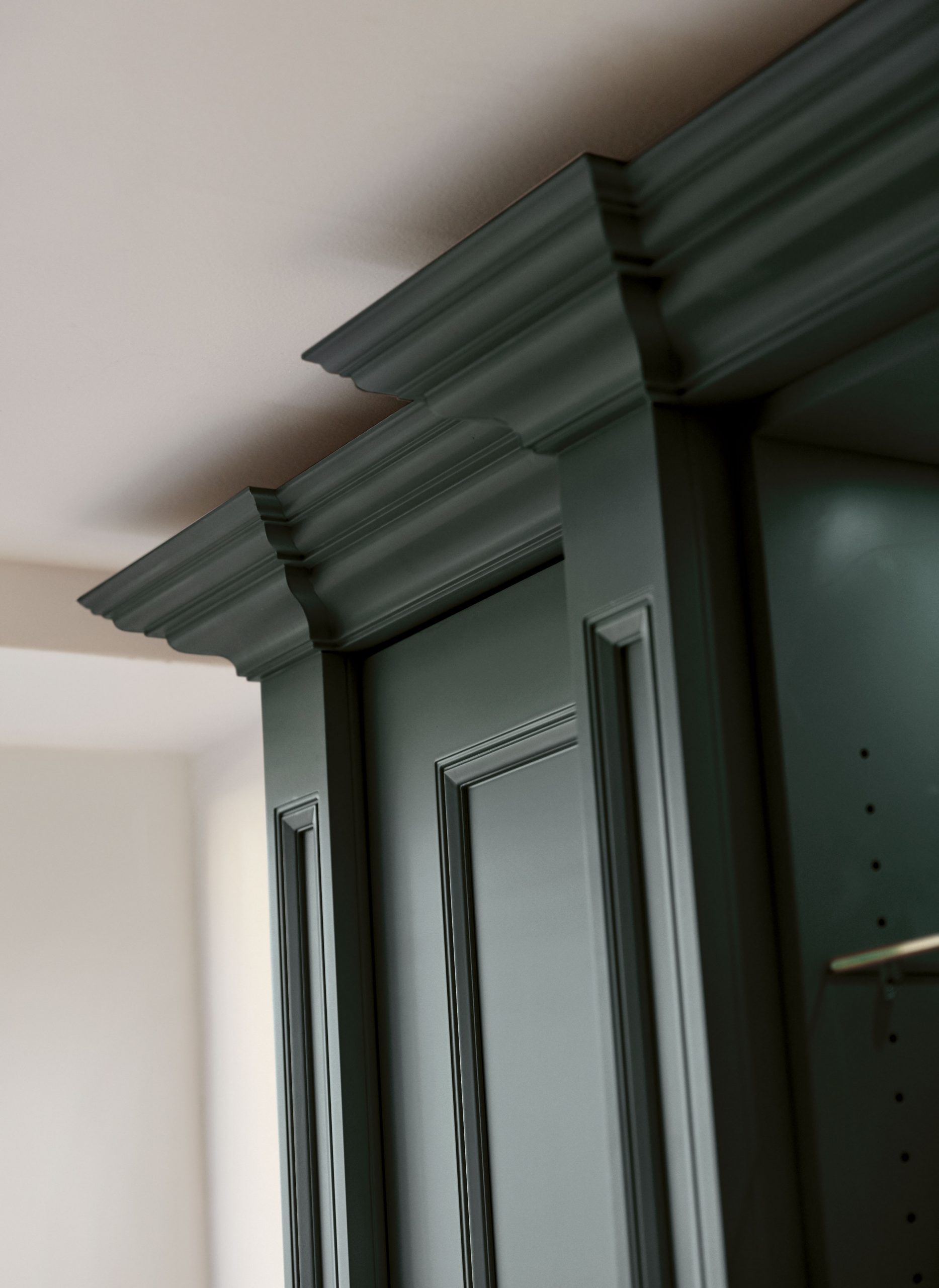 Our bespoke dark green library epitomises elegance and luxury. Fitting seamlessly into any nook or alcove, this handcrafted furniture solution creates a warm and cosy sanctuary, perfect to house your most prized possessions. Featuring shaker style bespoke cabinetry for discreet and stylish storage, and open shelving to showcase more decorative items. Designed and handcrafted by experts, this home library has been uniquely built for the client’s exact requirements.