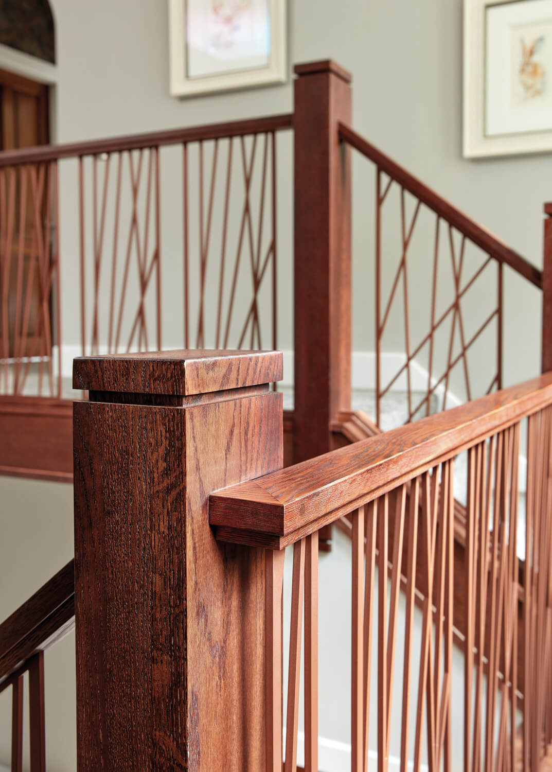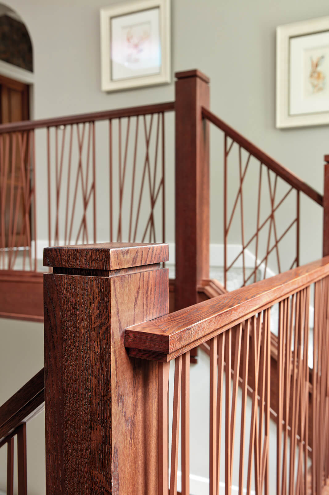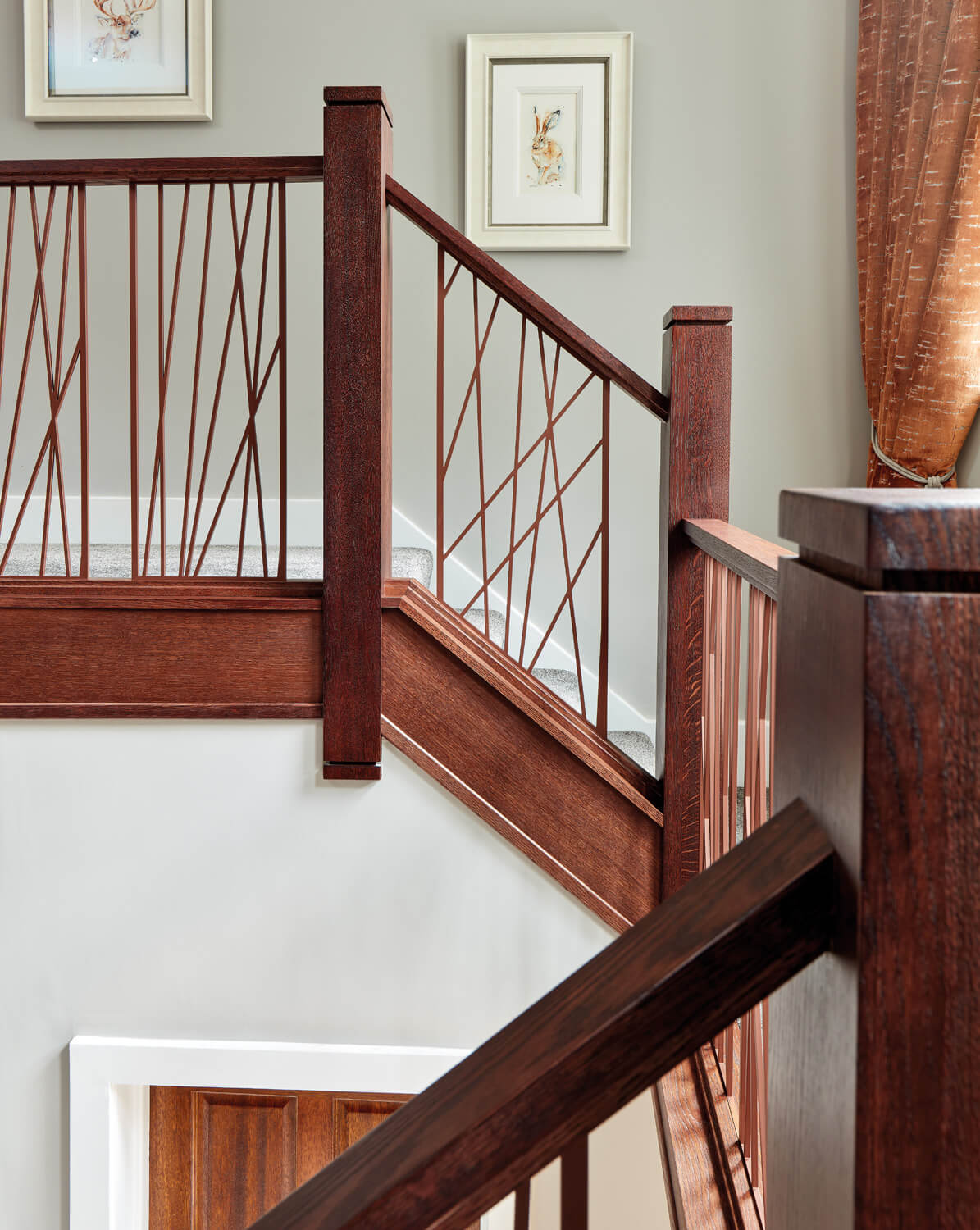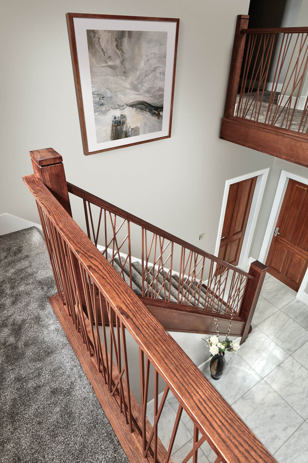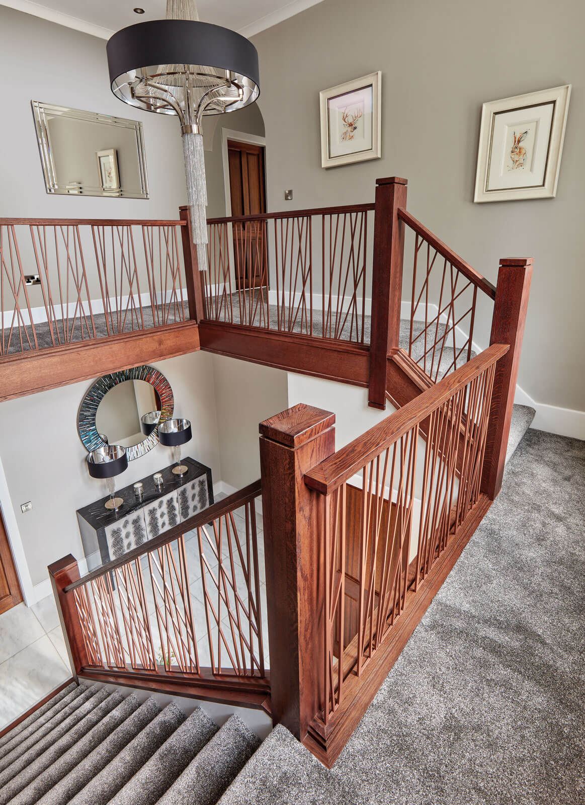 Old meets new to produce a completely original staircase using the finest quality materials; Oak and high-quality laser-cut steel, powder-coated in a copper finish. It’s a combination of styles that works seamlessly in both ultra-contemporary and traditional homes.