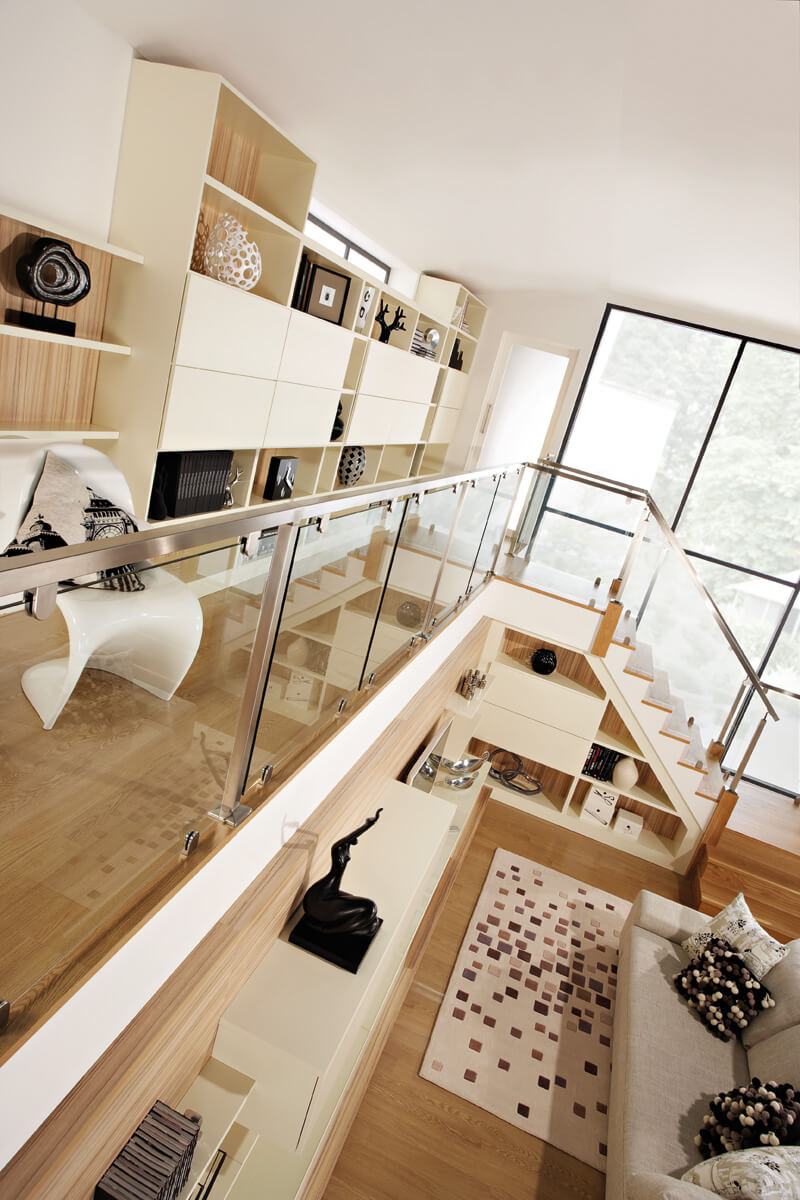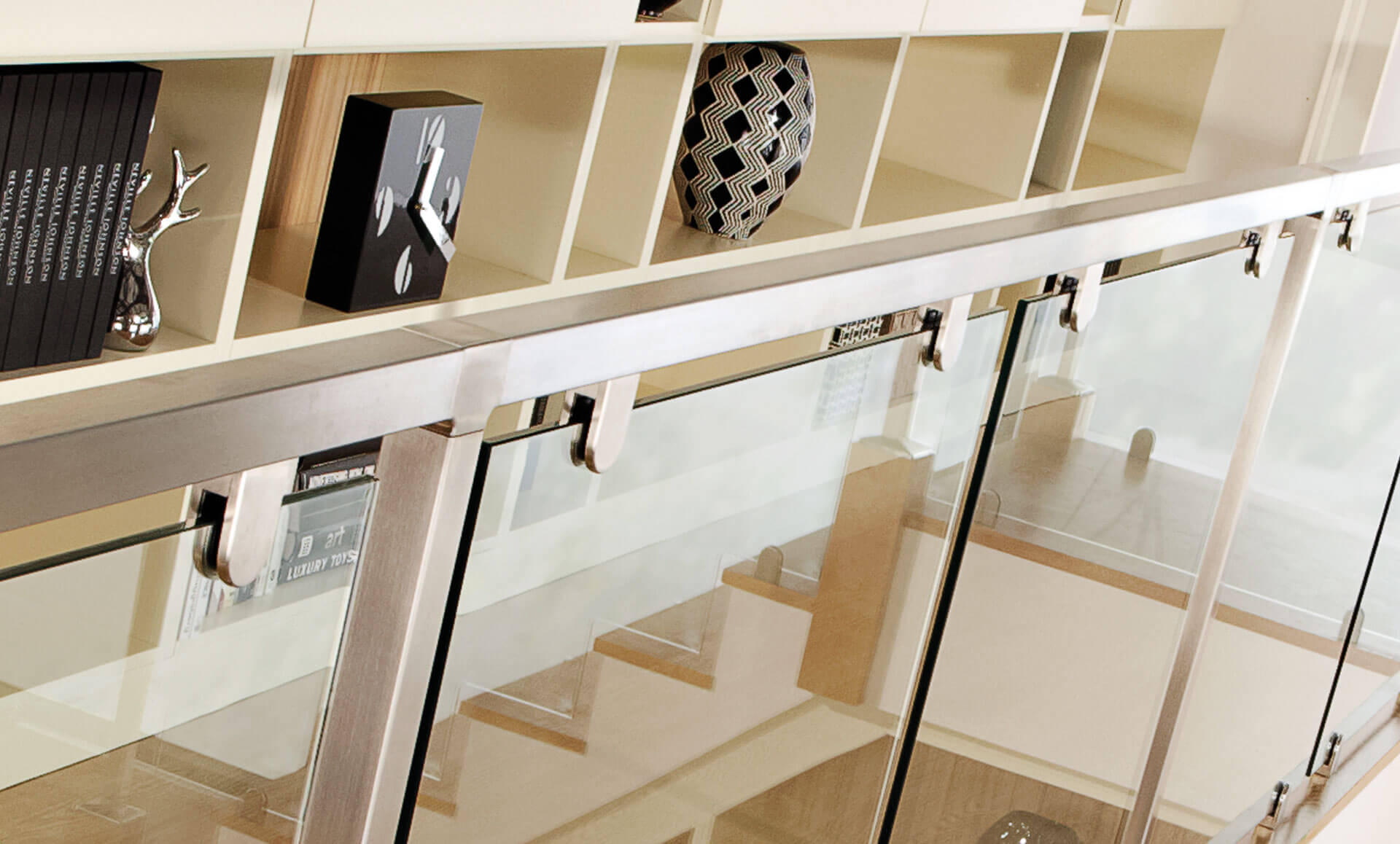 This stylish open plan living area and contemporary glass and steel staircase creates a true design statement in the heart of this home. The unique cut string design means each piece of glass is shaped perfectly around the treads. Our designer and surveyor can measure each step to ensure a perfect fit, regardless of the irregularity of your staircase.