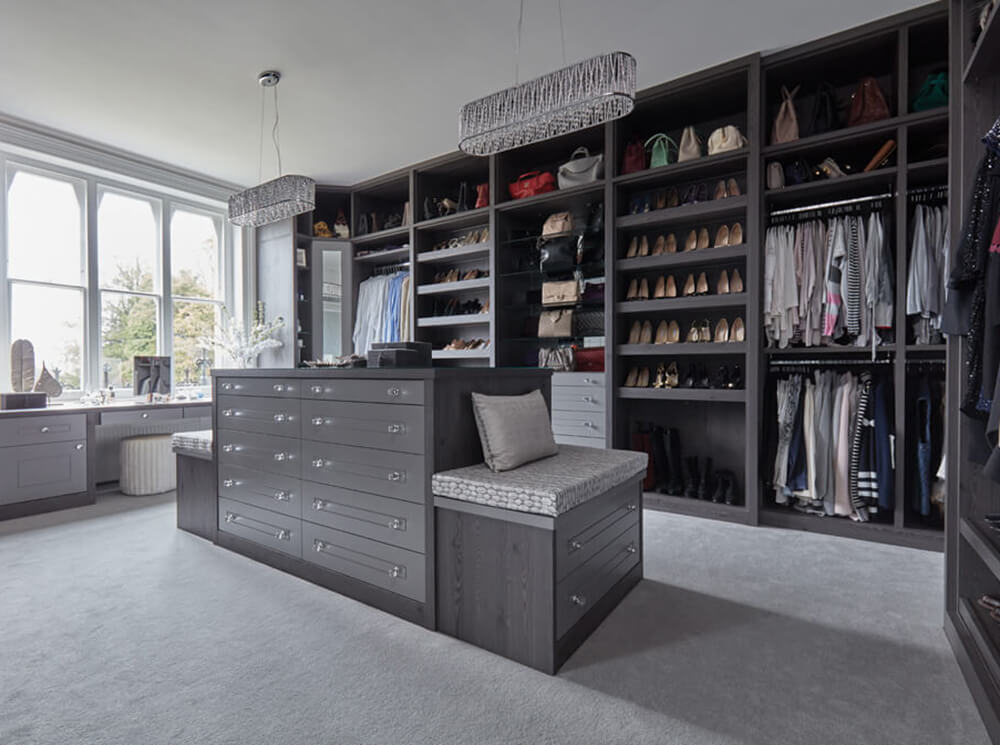 Every piece of fitted furniture can be designed exclusively for you, the intended space and the items you want to store. If you have an exquisite shoe collection we’ll measure each and everyone one to ensure a perfect fit, maybe you have a rare collection of books you’d like arranged according to size or colour, or is there a piece of art you want to take pride of place between shelves. Whatever elements you wish to incorporate, storage that’s made to measure ensures your cherished items take pride of place with no space wasted.