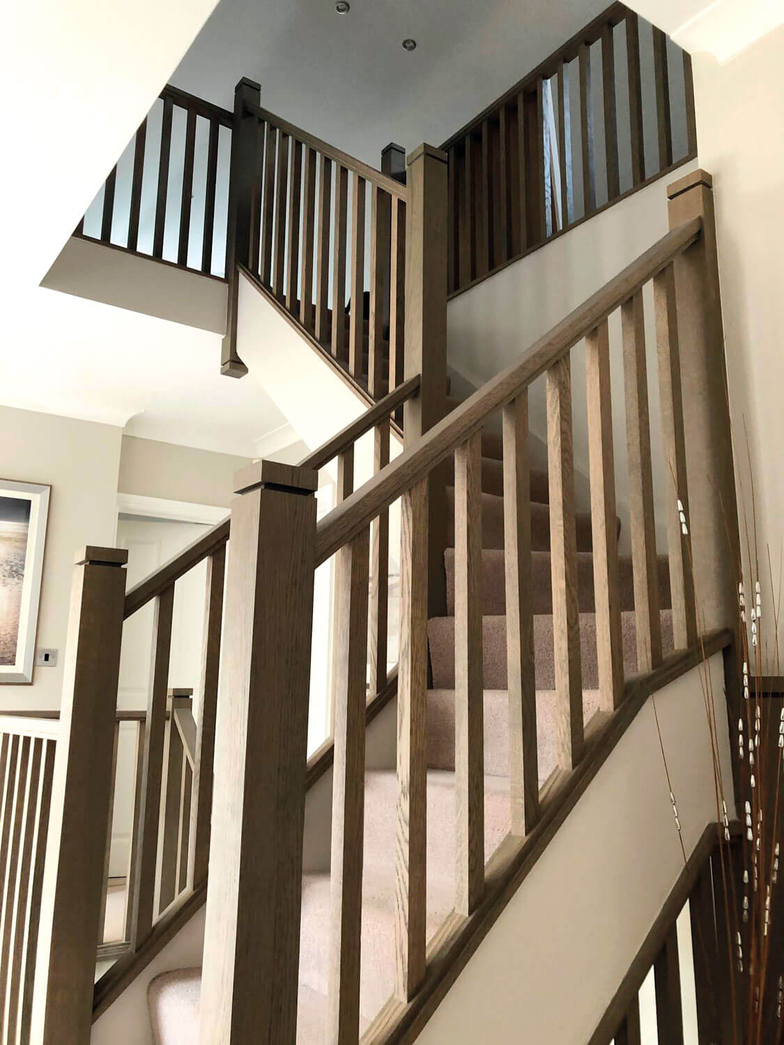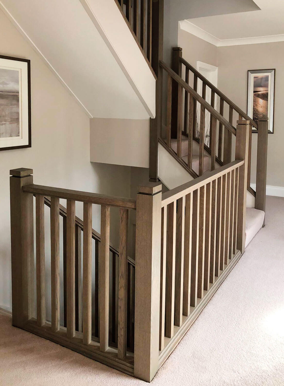 Built with high-quality timber and finished in a stunning dusted oak, this elegant staircase underlines how Neville Johnson can completely transform your existing staircase with no fuss or major upheaval. If you are looking for a traditional wooden staircase with a contemporary twist, our dusted oak spindles are the perfect solution. Teamed with a complementary balustrade, it offers a simple, flexible solution that will last for years to come.