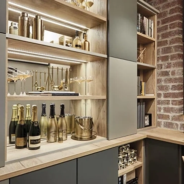 Browse our portfolio of real life client imagery and discover what sets Neville Johnson apart. All of our fitted home bars are handcrafted for a perfect fit, even on angled walls and sloping ceilings and made from full rigid carcasses for a truly premium finish.