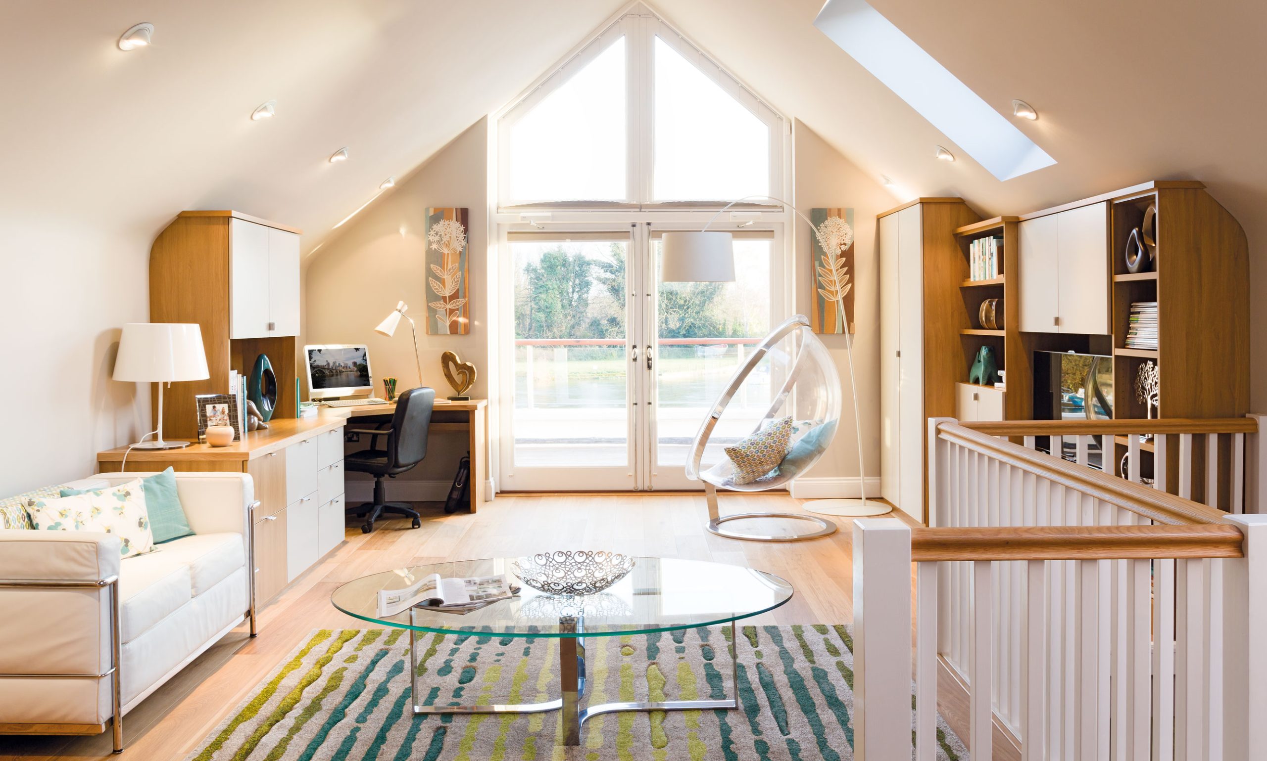 This design makes clever use of the space while working to the client’s requests. Working to a bespoke design the upper level of the garage is now a multipurpose room that ticks all the boxes. An integrated media unit means this room has everything for work, rest and play. While bespoke storage and dedicated desk area adds to the room’s practical function. The light finish on the paintwork is idea for a room with natural light. Not only does the finish maintain an open aesthetic but brightens up the entire space.