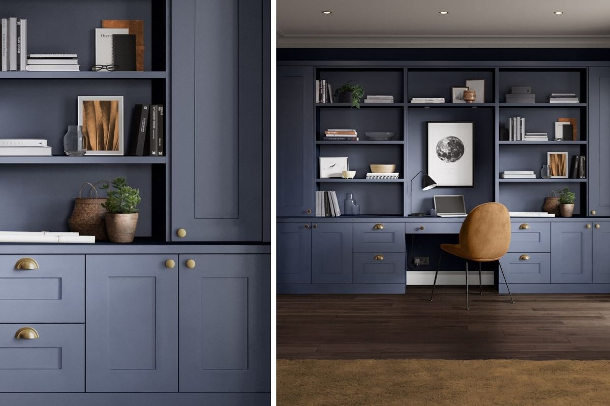 Choose a built-in desk with drawers to sit in an awkward alcove, providing a perfect area to organise paperwork. If you have lots of space to work with, why not transform an entire room with library shelving? Our designers can help you create a perfect home office to suit your home.