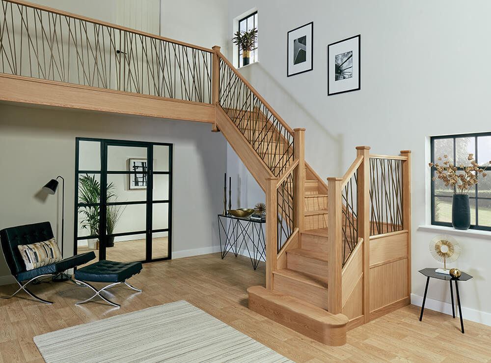 Lighter coloured woods in the hallway such as oak help to create a light and airy atmosphere and the addition of our modern Opus spindles opens up the space – allowing light to flood through.