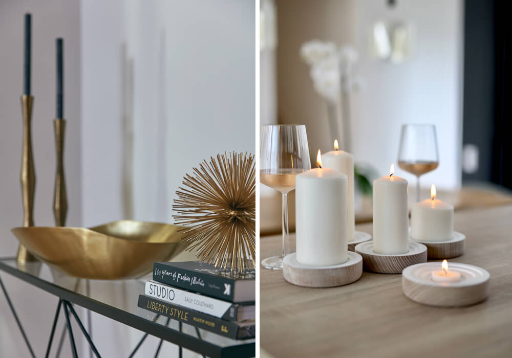 For the ultimate tranquil ambience fill your home with heavenly scents. Smell has the power to transform a space and can also act as the perfect accessory in lounges or hallways. One tip before guests arrive is to open windows and doors to allow fresh air to flow, eliminating stale smells. Think about what mood you want to create, use citrusy candles and diffusers to invigorate and awaken the senses or choose floral or woody scents to create a cosy, welcoming feel. When choosing decor find balance, consider the placement of objects and avoid crowding certain areas.
