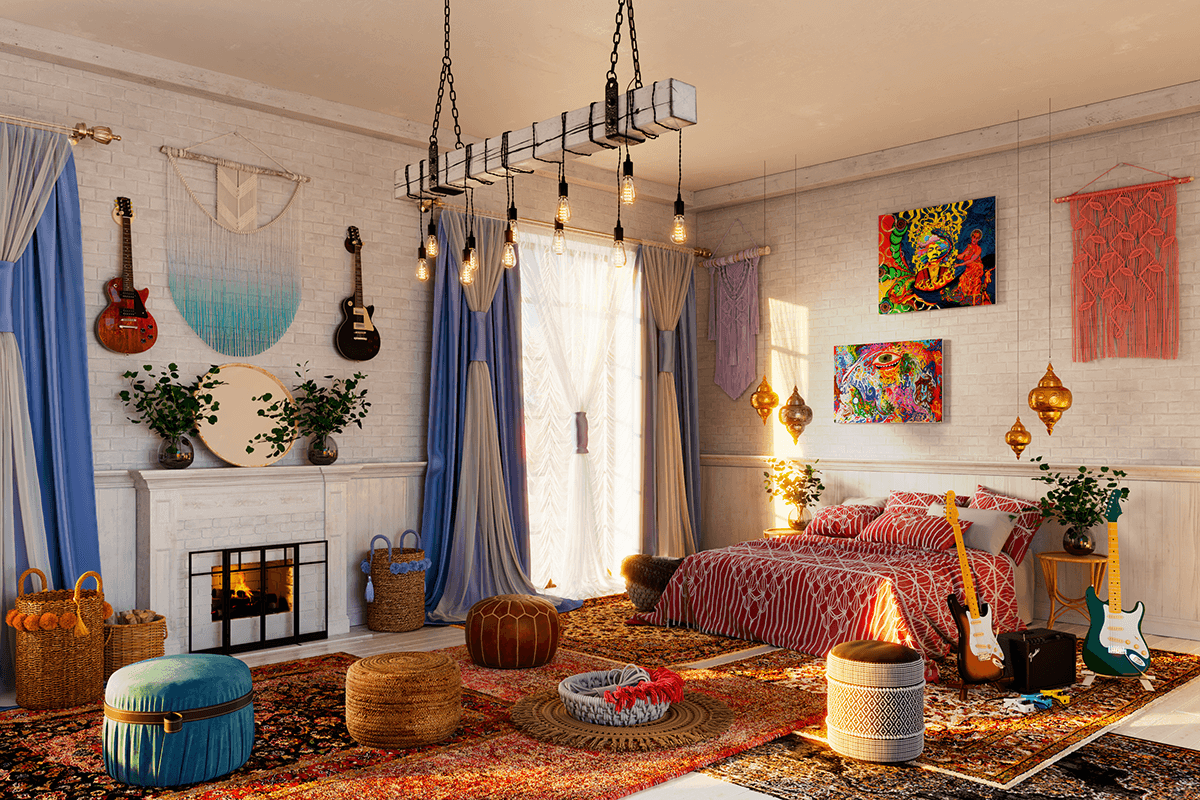 Here we have a bohemian bedroom inspired by the music legend, Jimi Hendrix.