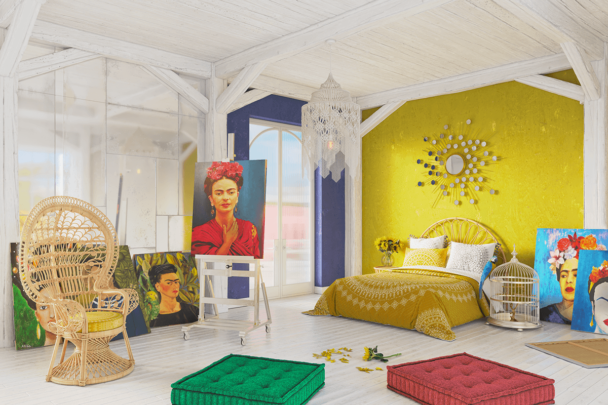 Also well known for her self-portraits, we have included an antique mirror wall as an easy way for Frida to continue creating her artistic masterpieces.