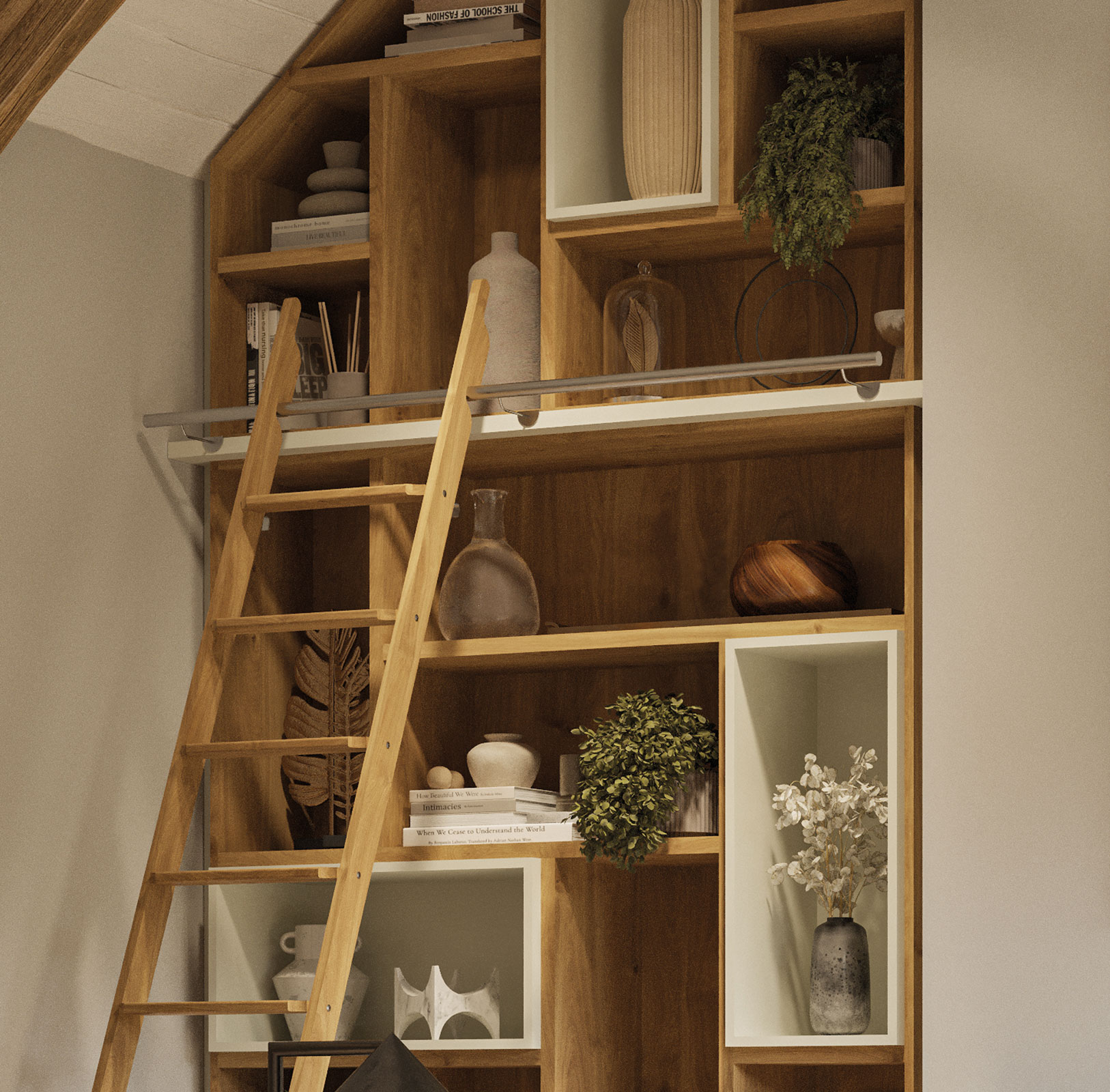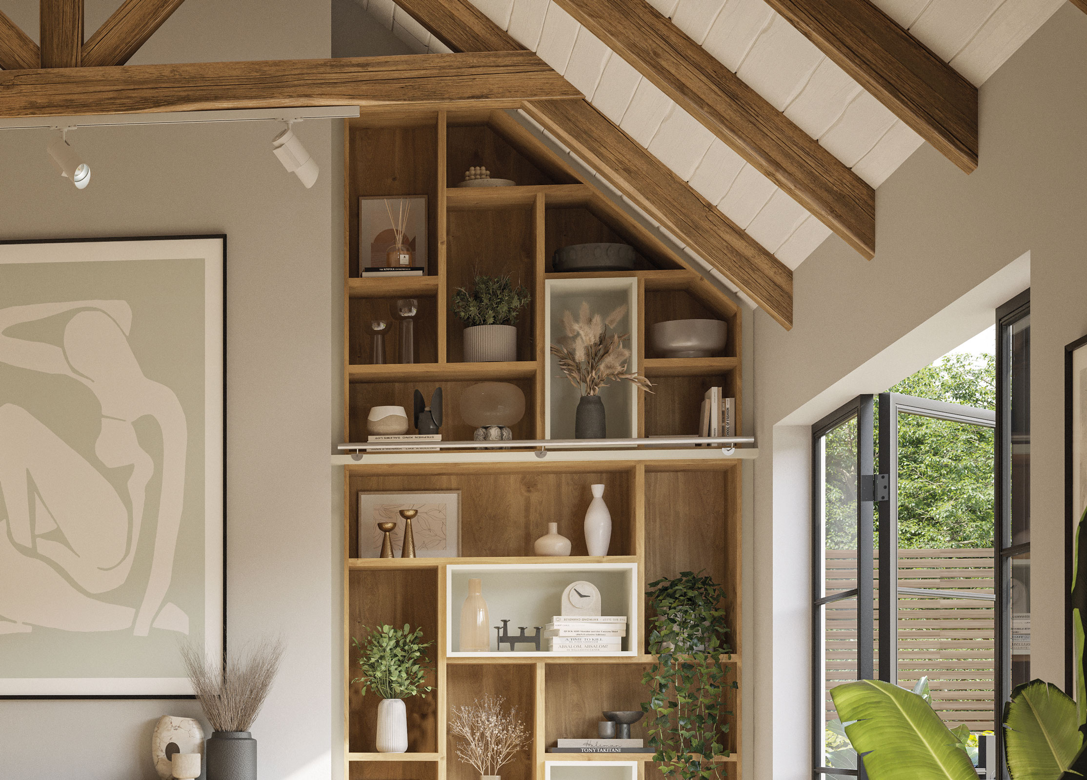 Indulge in the sophistication of a luxury Scandinavian style haven adorned in Charlbury Oak finish. The living space offers curated charm, while a central island featuring wine shelves, beckons connoisseurs. This harmonious blend of sleek design, muted tones, and natural textures creates a serene yet opulent sanctuary for the discerning homeowner. Our furniture is created completely bespoke, meaning that we can maximise storage potential with extra tall units.