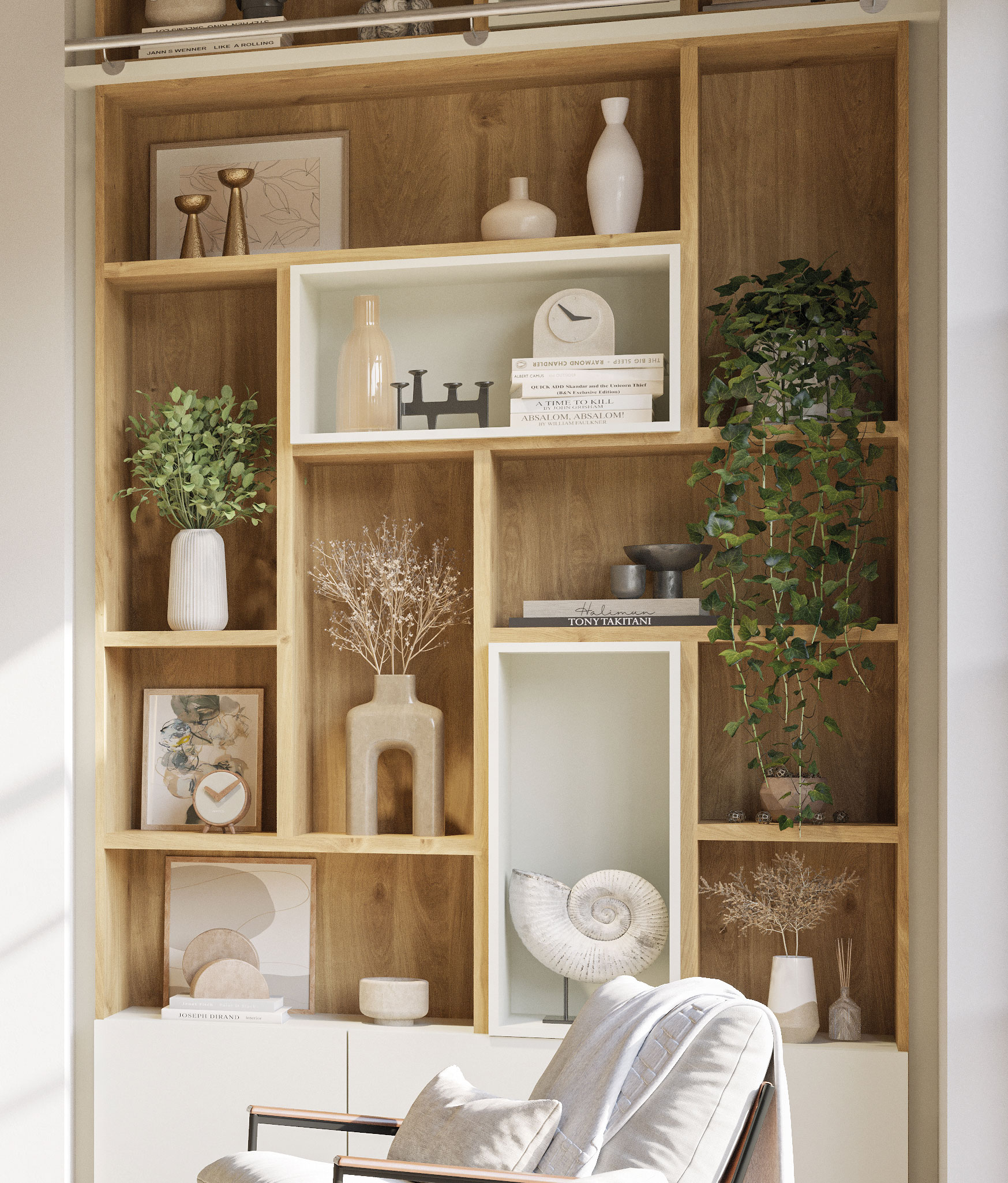The new exclusive feature inset units add luxury and style to this stunning open storage unit. They can be used to highlight your most treasured possessions.