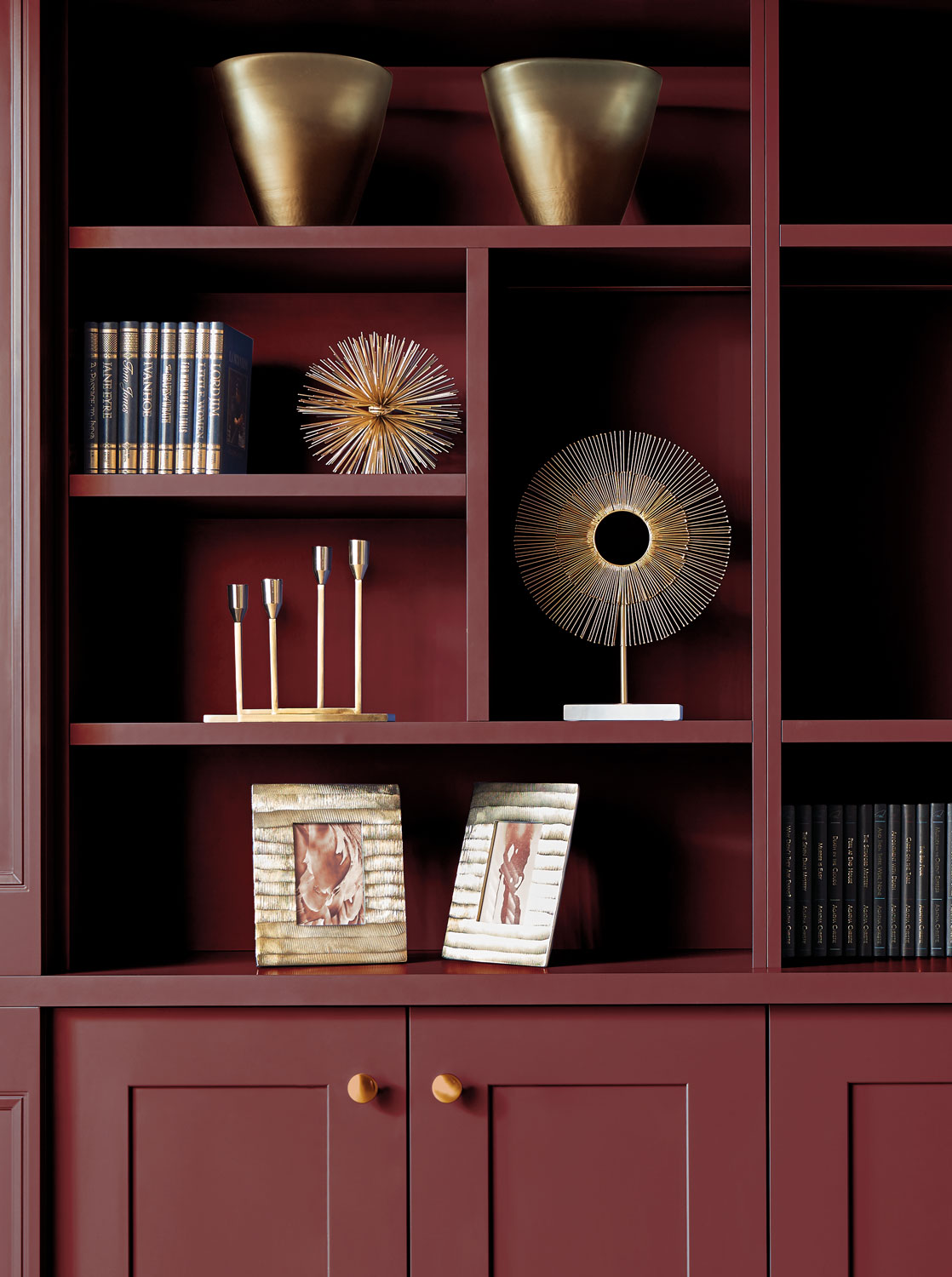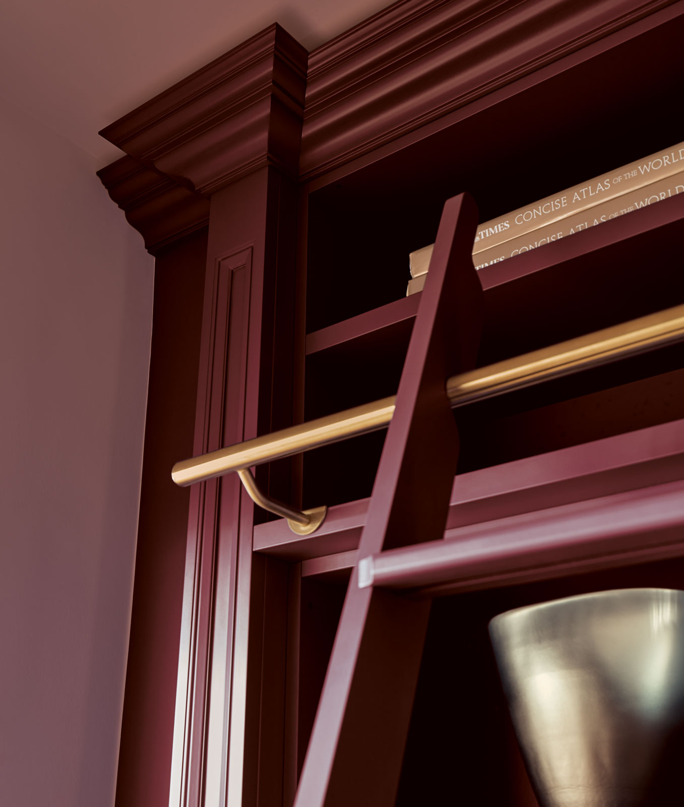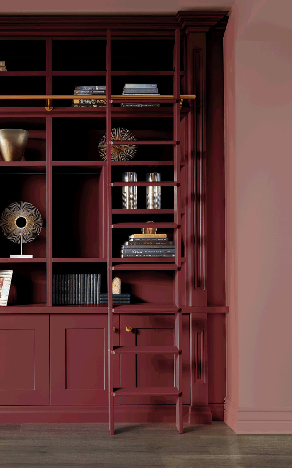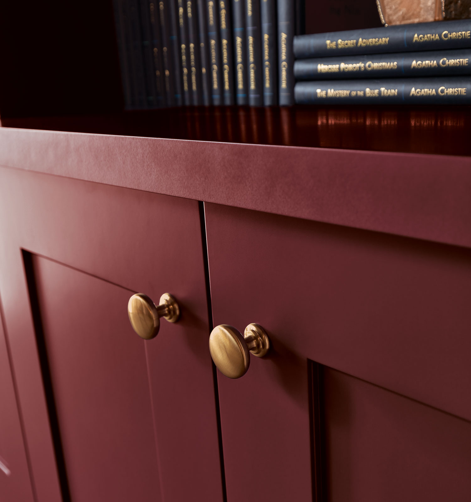 This luxury library is handcrafted to bring both vibrancy and refinement to the home. Bespoke cabinetry has been designed with balance in mind – open shelving to showcase personal collections, paired with beautifully crafted cupboards for seamless storage. Finished in our deep Carmine shade, this design is a striking focal point that elevates any interior.