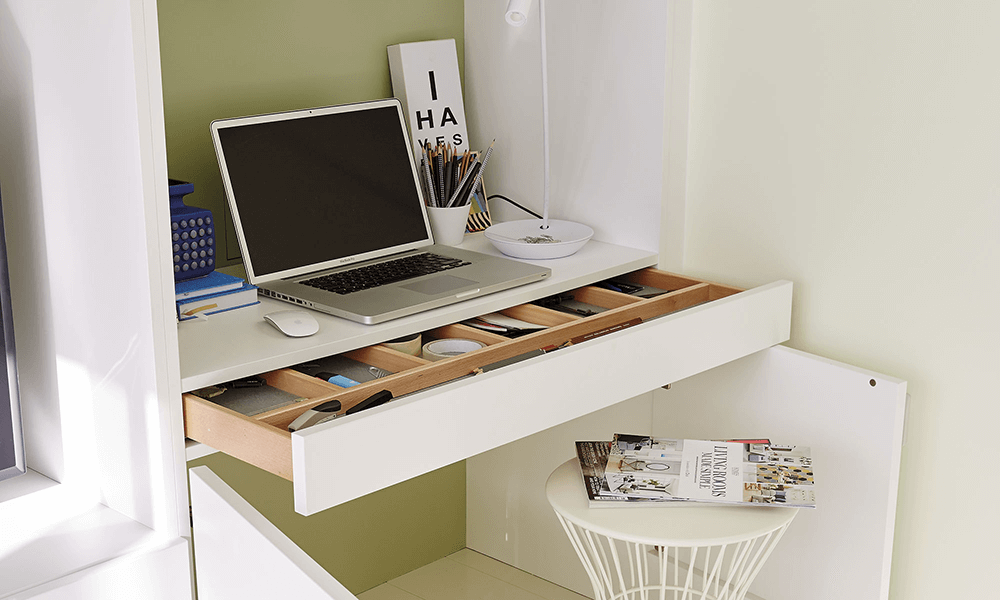 Smart planning can make the most of the tightest corners and can even add value to your home in the long run. Create a zone for work or study. Handmade furniture that’s specially designed for your technology or paperwork will keep your living areas free from clutter. You’ll also feel more relaxed in your living spaces and kitchen if you’re not working in areas where you also ‘wind down,’