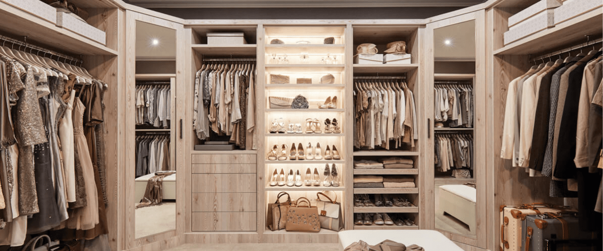 Wood-panelled walls are often seen in mid-century modern designs; choose a wooden fitted wardrobe instead to achieve a similar with the significant plus of storage space.