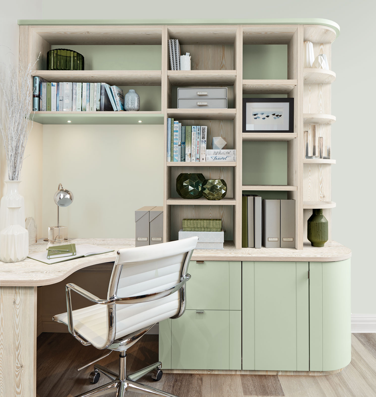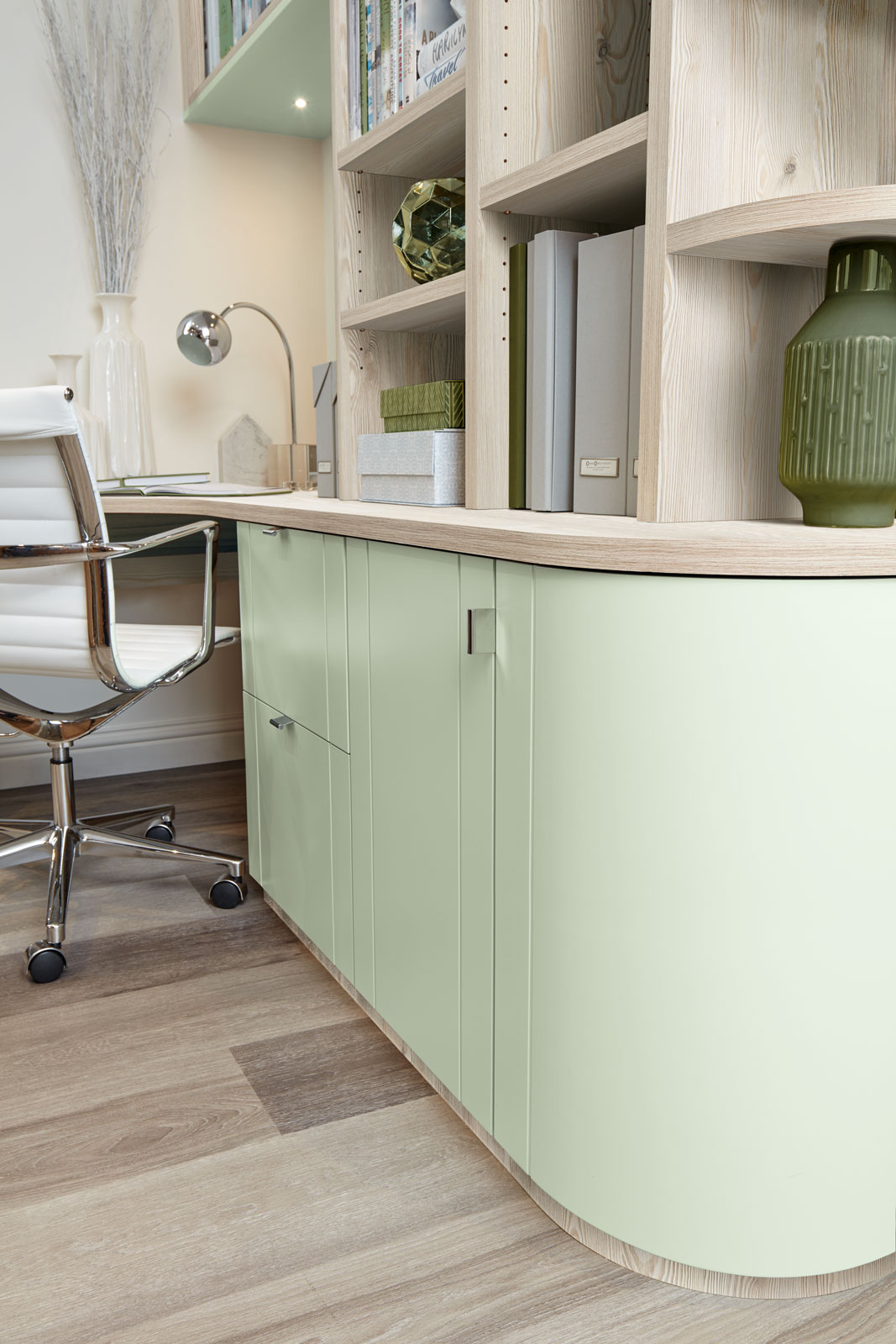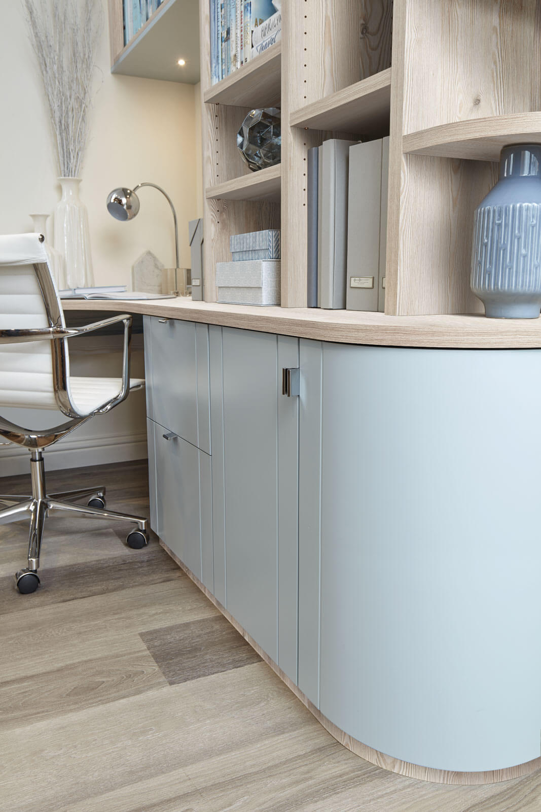 This luxury home office boasts ample storage in both open and closed cabinetry, to maximise storage potential and practicality. All of our bespoke furniture comes in a wide range of stunning colours and finishes. So, you can create something as unique as you and your home.