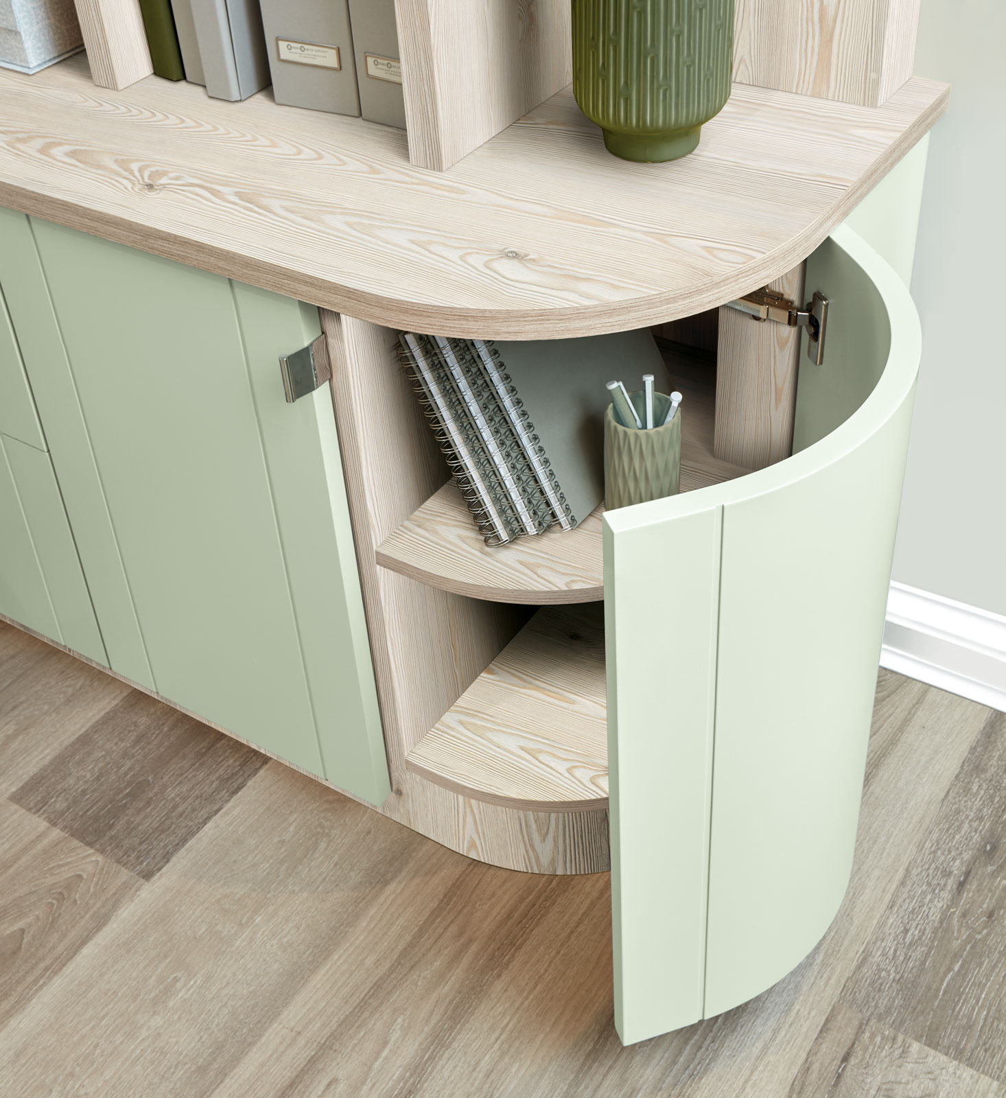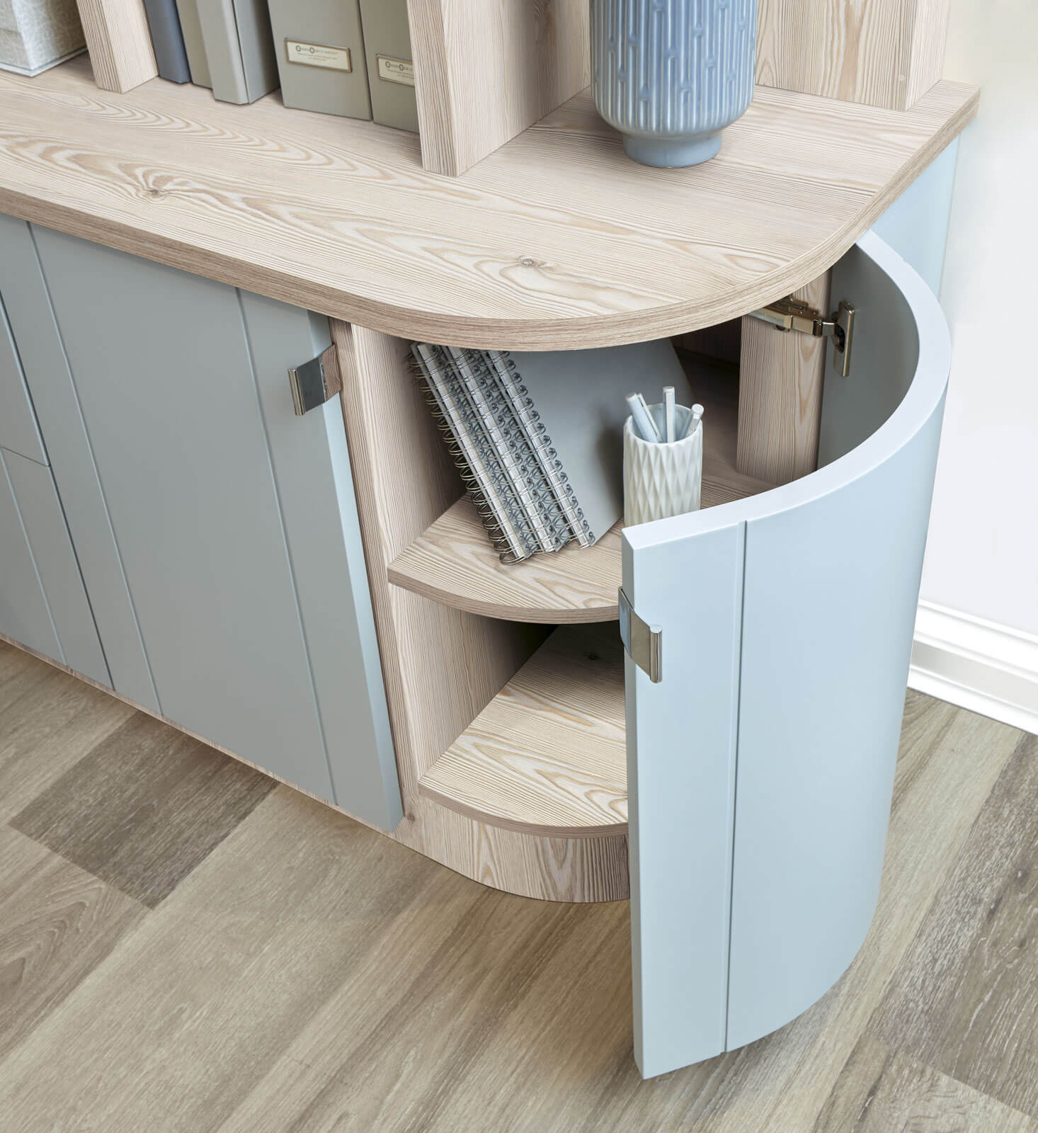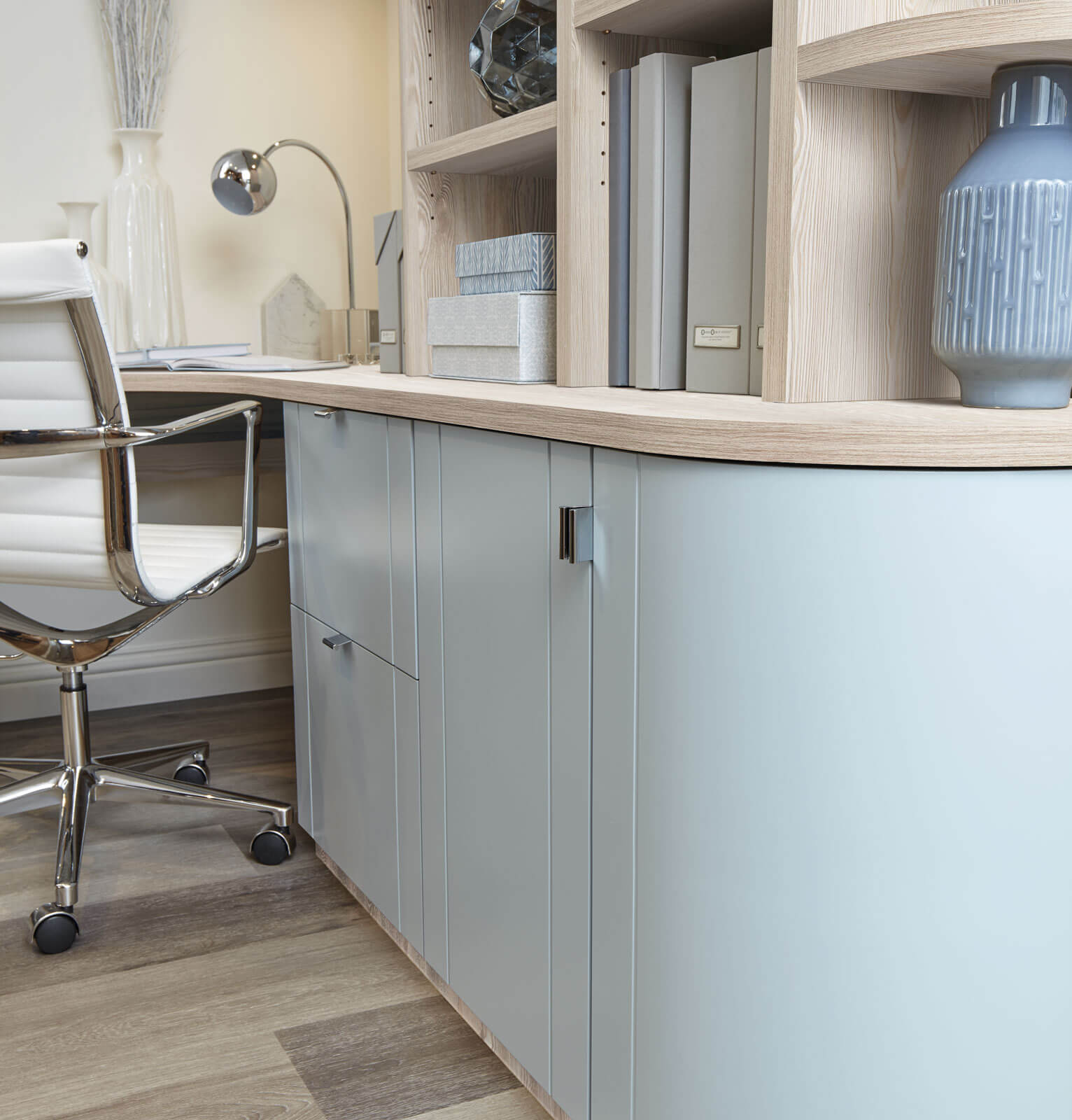 This luxury home office boasts ample storage in both open and closed cabinetry, to maximise storage potential and practicality. All of our bespoke furniture comes in a wide range of stunning colours and finishes. So, you can create something as unique as you and your home.