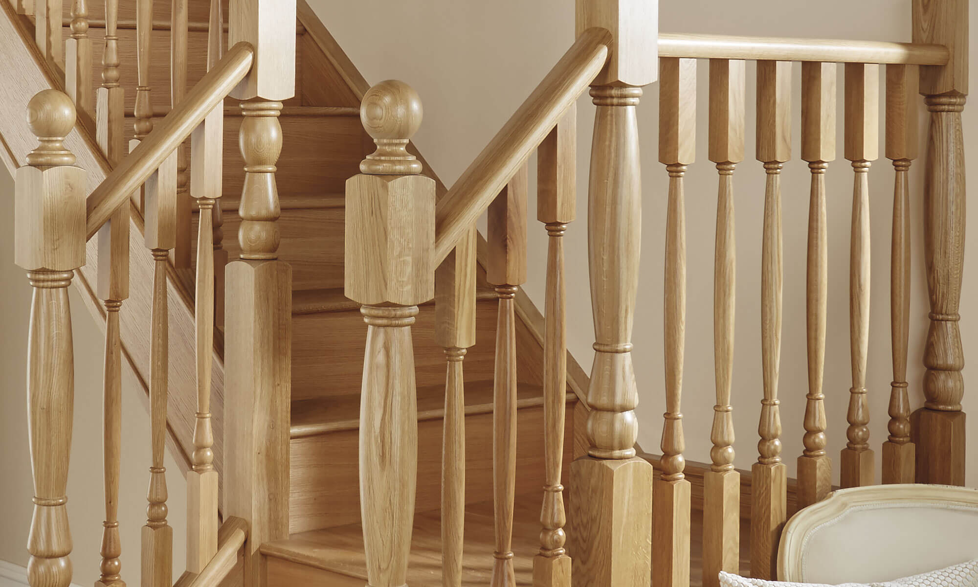 They are available in a range of materials, with popular choices being oak, and pine. Styles include: turned, twisted, chamfered, box and fluted.