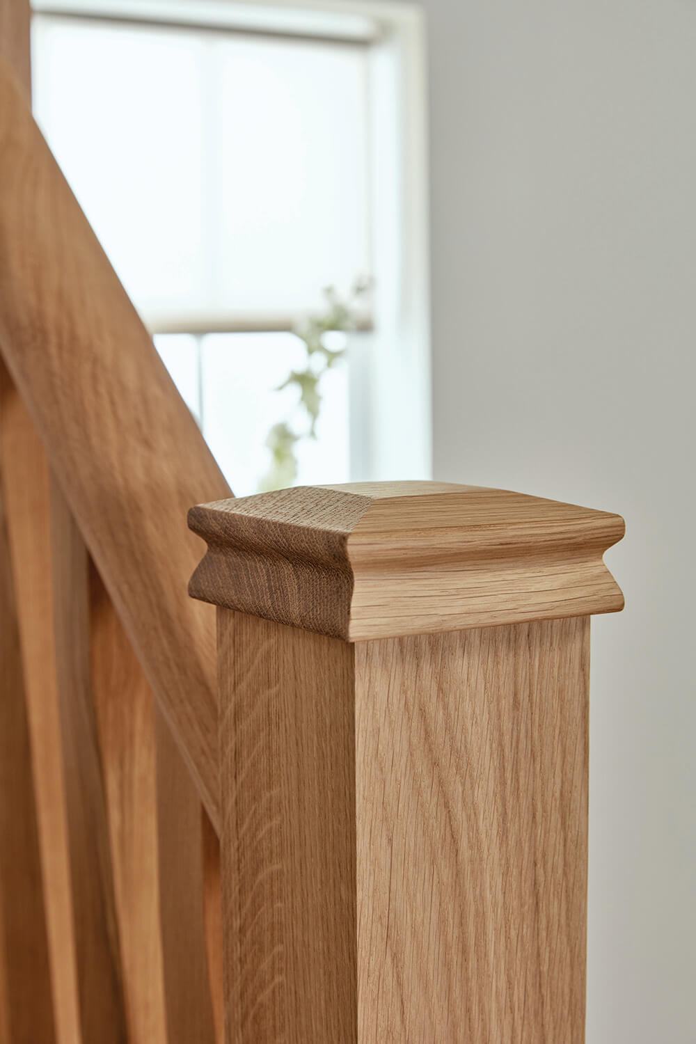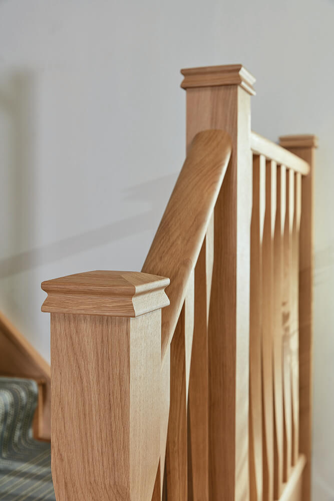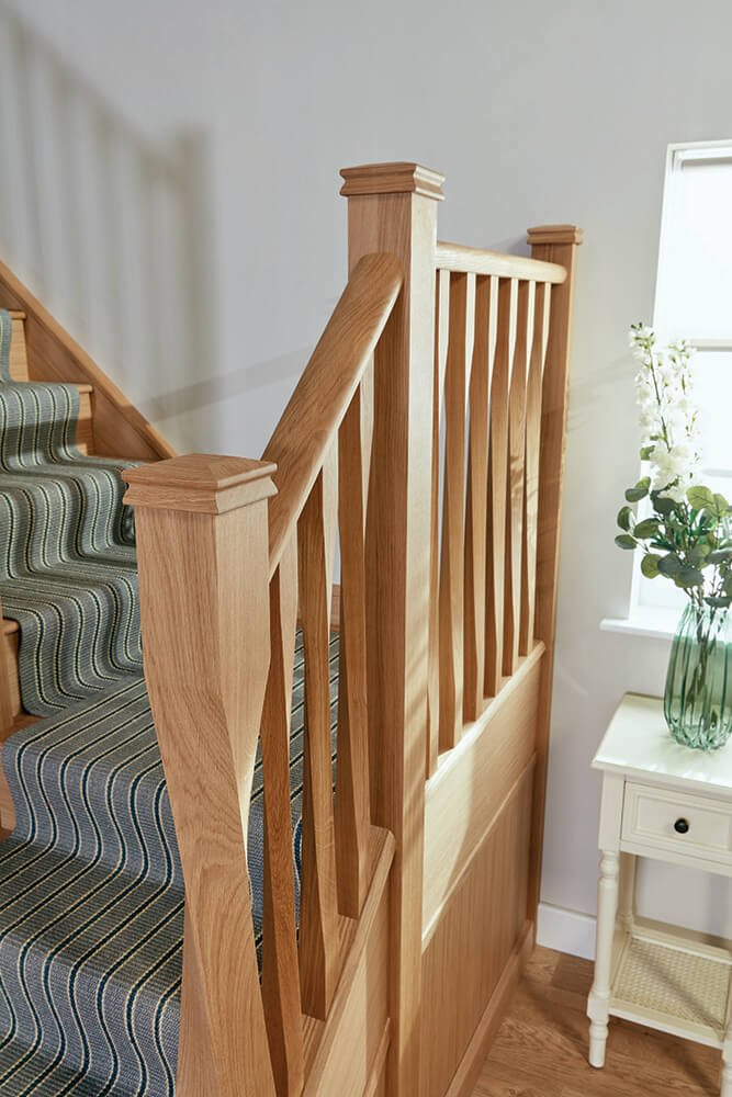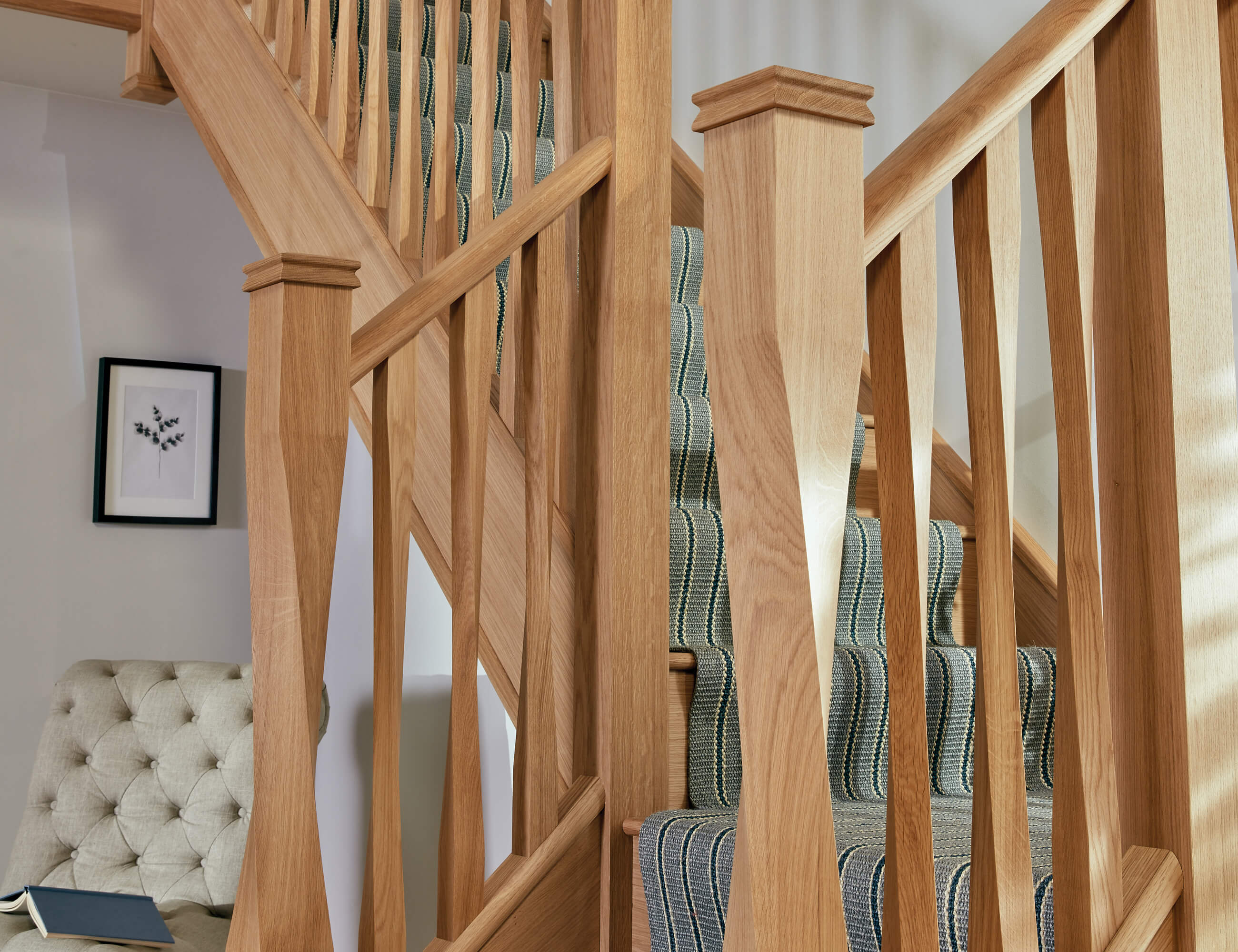 Introducing a twist on the classic oak staircase, the Eden Oak Staircase will give every hallway a touch of class. The spindles and newel posts have a sculpted design that adds a depth of character to this stunning staircase. Eden is handcrafted and carefully fitted to enhance and reinvigorate a wide choice of spaces from grand entrances to homely hallways.