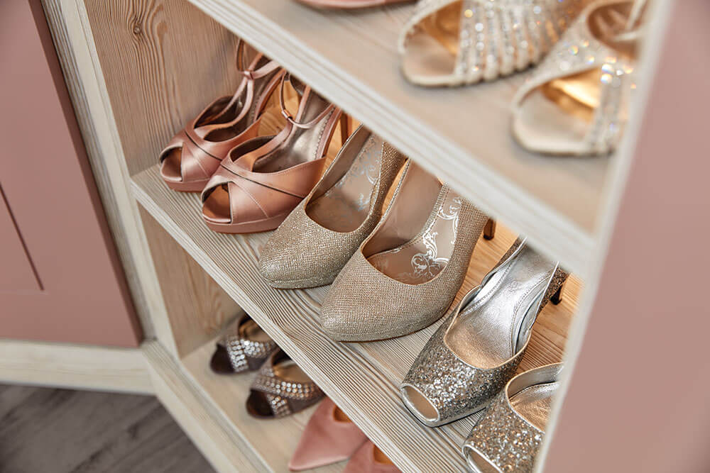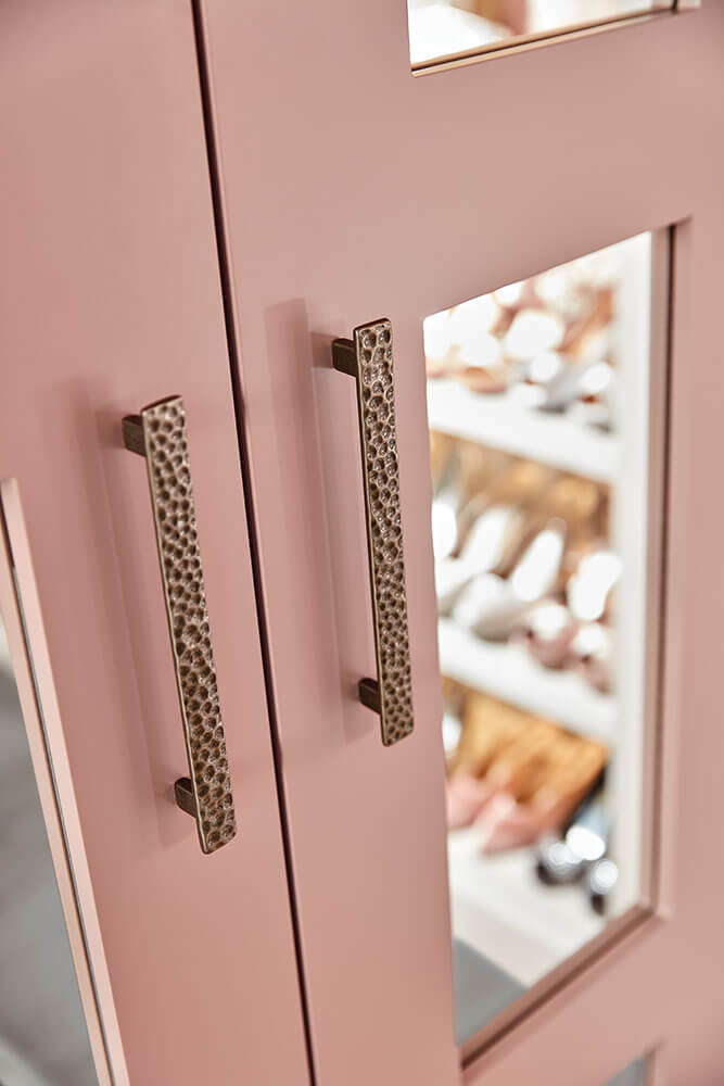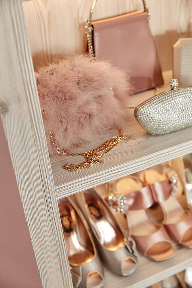 Add a feminine touch to your dressing space with this pink fitted wardrobe. Handcrafted to your specification from our White Larch timber finish. Illuminated open shelving features on this modern take on traditional fitted wardrobes. The pink wardrobe design adapts to fit many room styles and sizes. Choose from an array of different colours to create a design especially for your home. So you can create a design to suit your own personal taste.