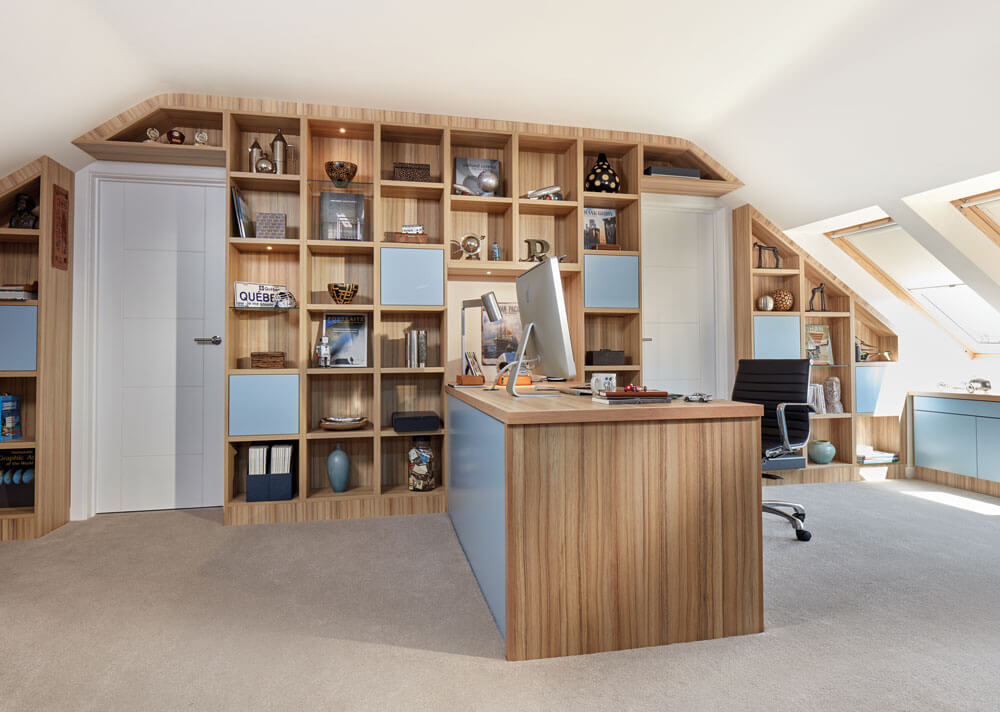 When working from home, you are less likely to be ruled by the clock – start times, lunchtimes, home times, meeting times. At home, you’ll be able to take proper breaks at times that feel natural to you. For example, you may work through the traditional lunchtime but take a break mid-afternoon to go for a swim, walk the dog, or pick up the kids. Stress levels drop when you’re working in a happy, focused and relaxed environment. This can be improved by the way your home office is arranged. A bespoke solution means you can design your cabinetry to meet your needs; it can be finished in a colour and texture of your choice, your desk could be positioned to face your favourite view, and you can opt to close it off at the end of the working day. All of these will help to enhance your wellbeing while you work.