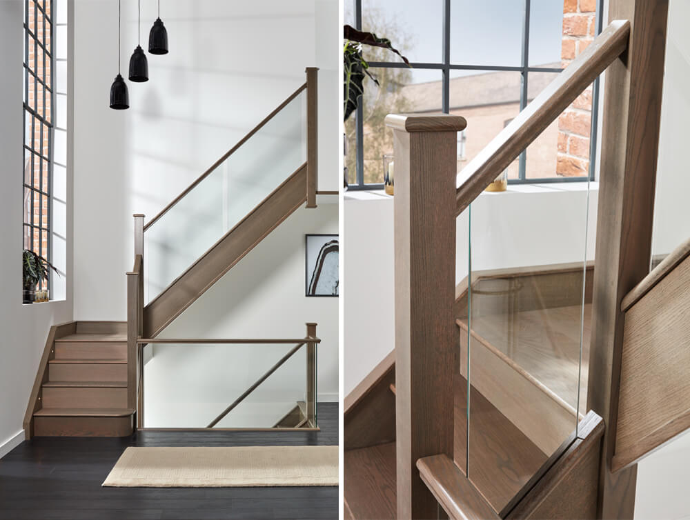 Dusted Oak Inline Glass Staircase