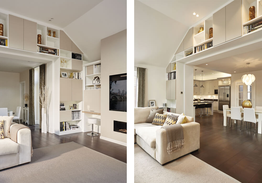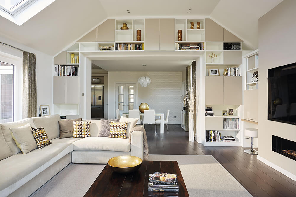 Bespoke multi-functional furniture can transform family rooms with sleek cupboards and shelving, integrated office spaces that can be hidden away when they’re not being used, and home cinema systems that bring everyone together into one utilitarian space. A well-considered design makes efficient use of unused nooks and quirky corners, turning family rooms into places that aren’t just comfortable but stylishly practical and well-loved.