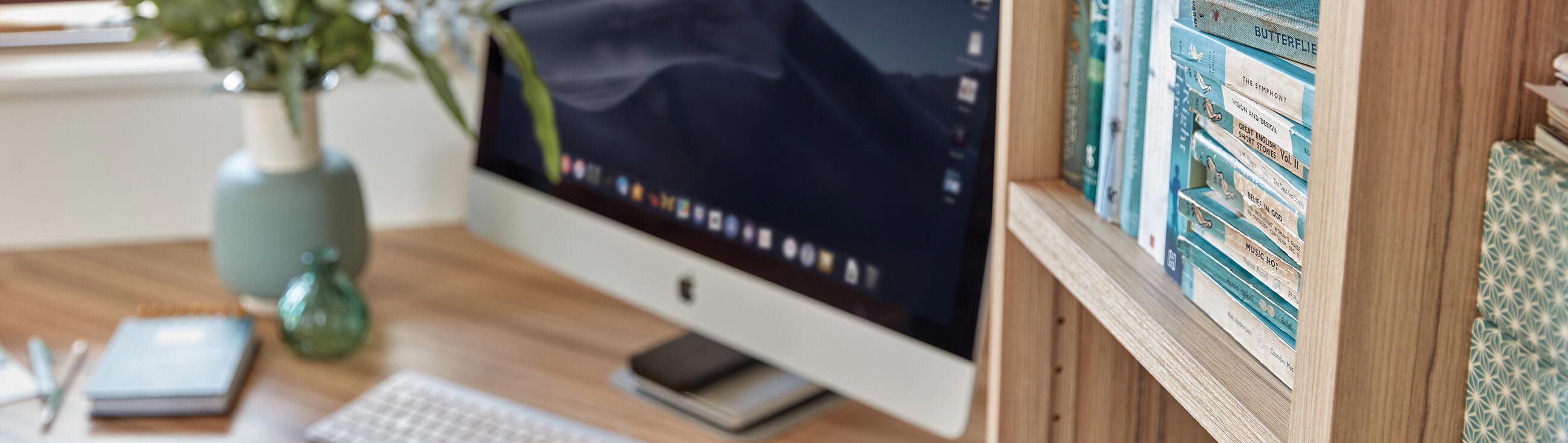 Bespoke open and closed storage with stylish shelving and drawer space for your professional paraphernalia can help you to hide away your working day at 5pm. A clutter-free space helps you to feel more organised and productive, and if you have a dedicated space for everything, it’s easier to keep your office area tidy.