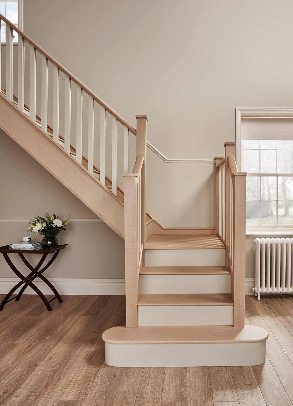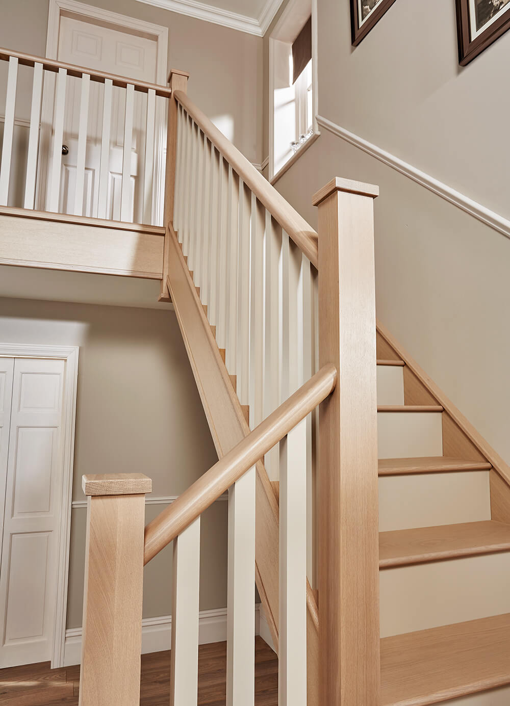 Painted timber staircases have forever been in our portfolio; however, with a current trend focusing on individuality in the home and people beginning to invest more in home improvement there’s a real resurgence in unique painted designs. Painted staircases can be finished to visually fit your home’s aesthetic and personal taste. In addition to our natural warm wood finishes, we offer a carefully curated palette of paint colours. Go bold with contrasting colour or keep things paired back with our timeless neutrals. These can be applied to all the newel post, caps, handrails, base rails, spindle styles and risers.