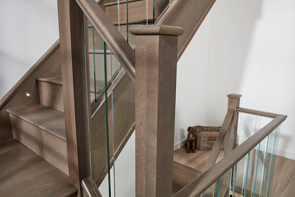 Dusted Oak Staircase with Glass Spindles