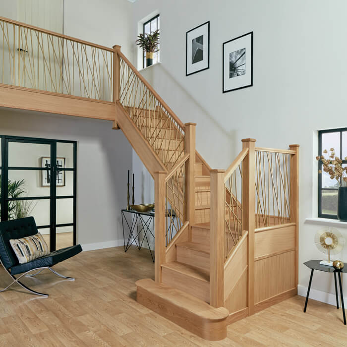 Combining a contemporary copper finish within a traditional oak design, this Opus staircase will make a stunning statement in any home.