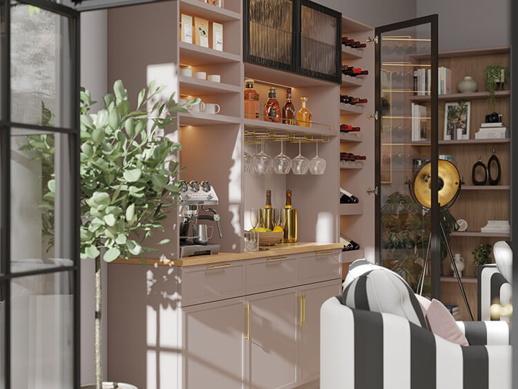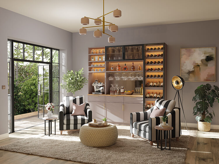 “Many of the clients I speak to haven’t treated themselves to something indulgent at home that isn’t solely centred around the whole family in a long time. Home bars and beverage stations are an opportunity to curate a space they can be proud of and make all their own. The little details that we obsess over – considered ambient lighting, for example – really help to make it a stand-out space that you want to slow down and spend time in.” – Cari Bateman, Neville Johnson Sales Designer