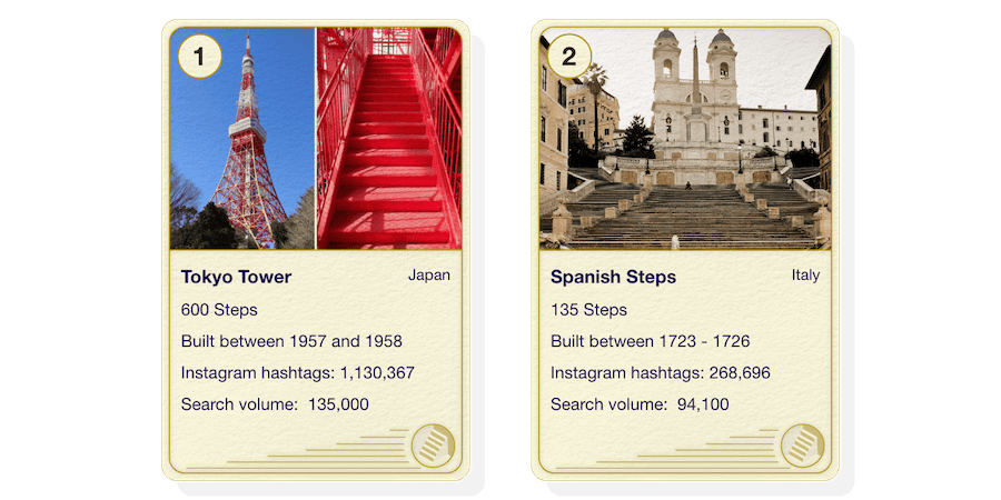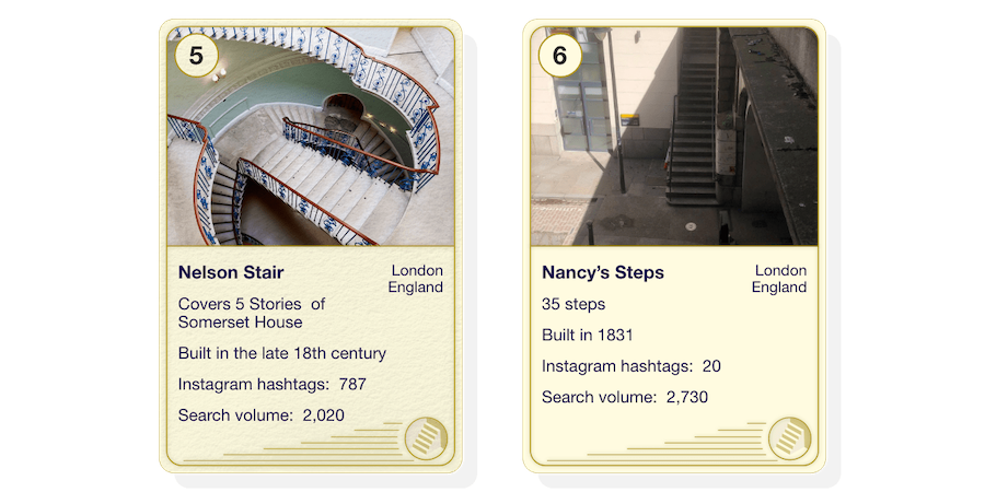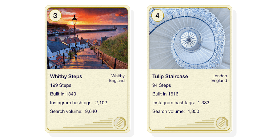 | Staircase | Location | IG Hashtags | Search Volume | Steps |