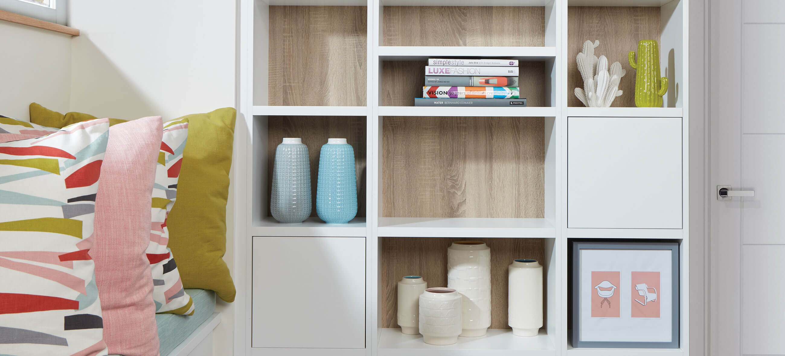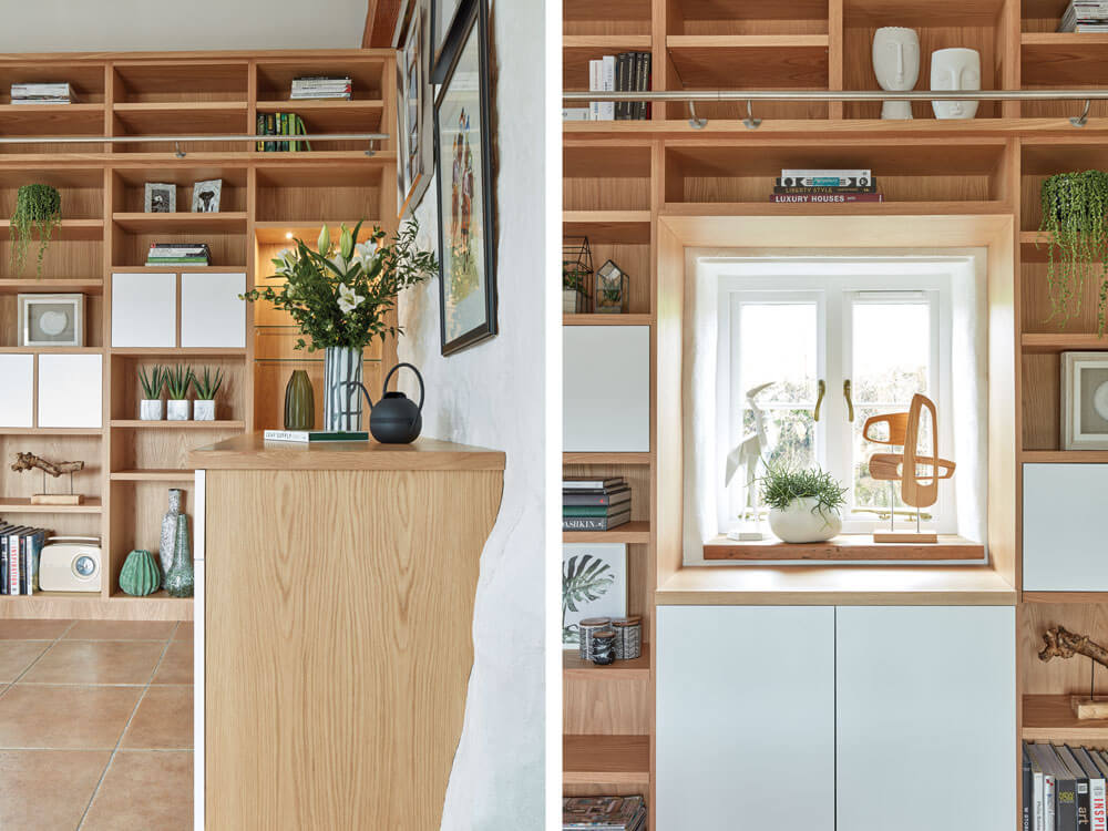 If you’re placing your shelves or bookcase close to a window is there an opportunity to include seating into the configuration? A bay window could be an excellent place to include a window seat that also doubles as closed storage. A beautiful seating area creates a relaxed ‘zone’ where you can sit and read or simply enjoy the view, surrounded by your favourite things.